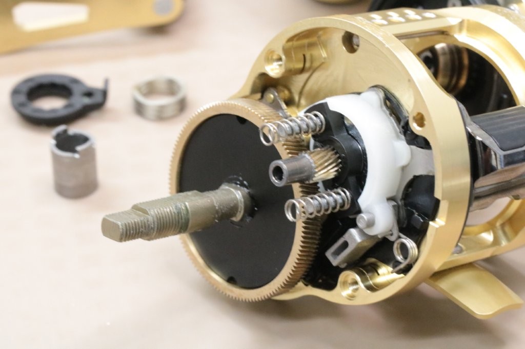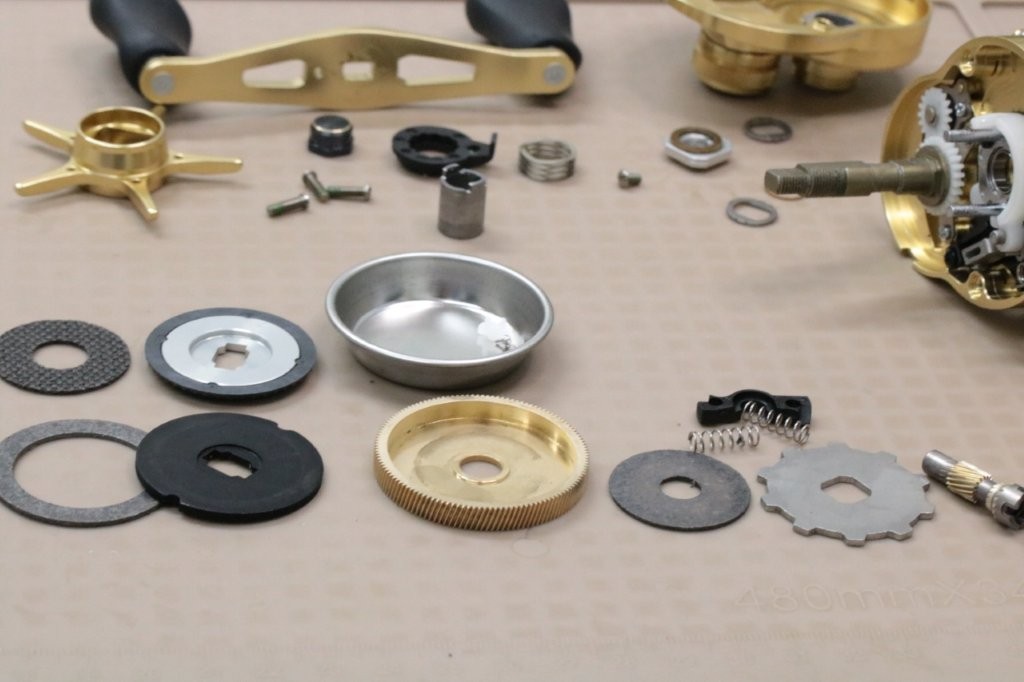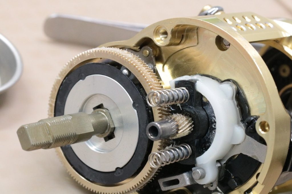 ドラグパーツを組み込み、ギアをグリスアップします。