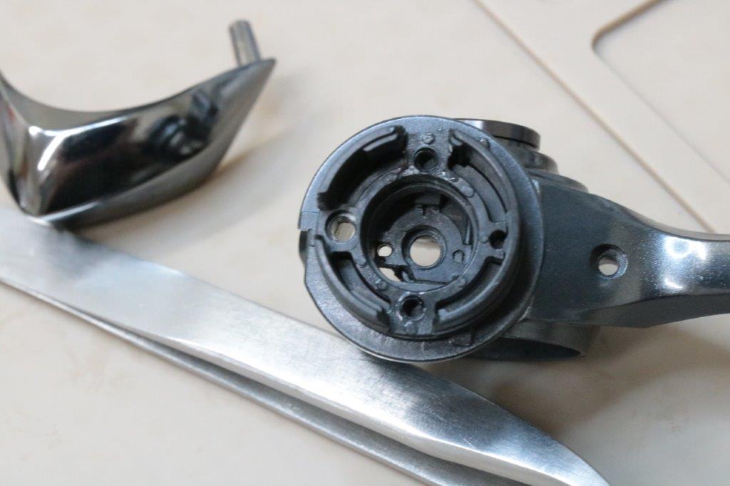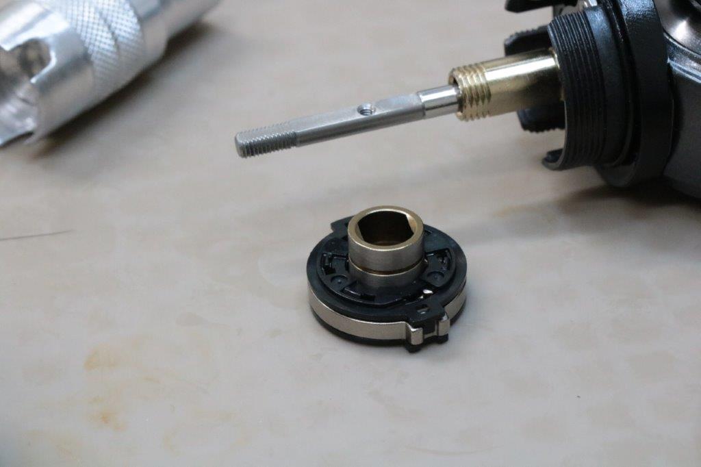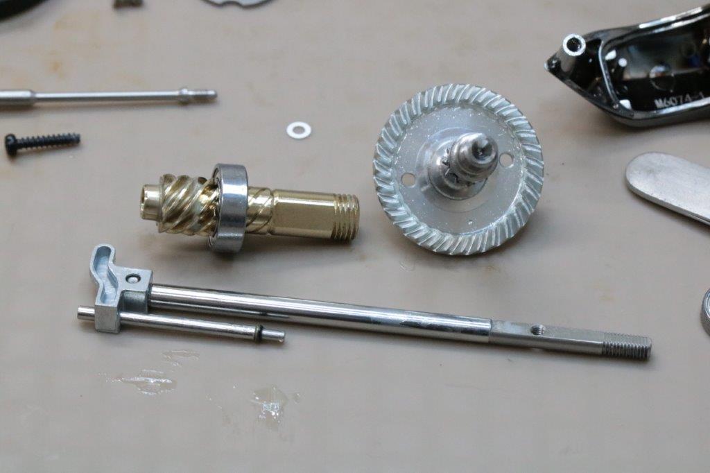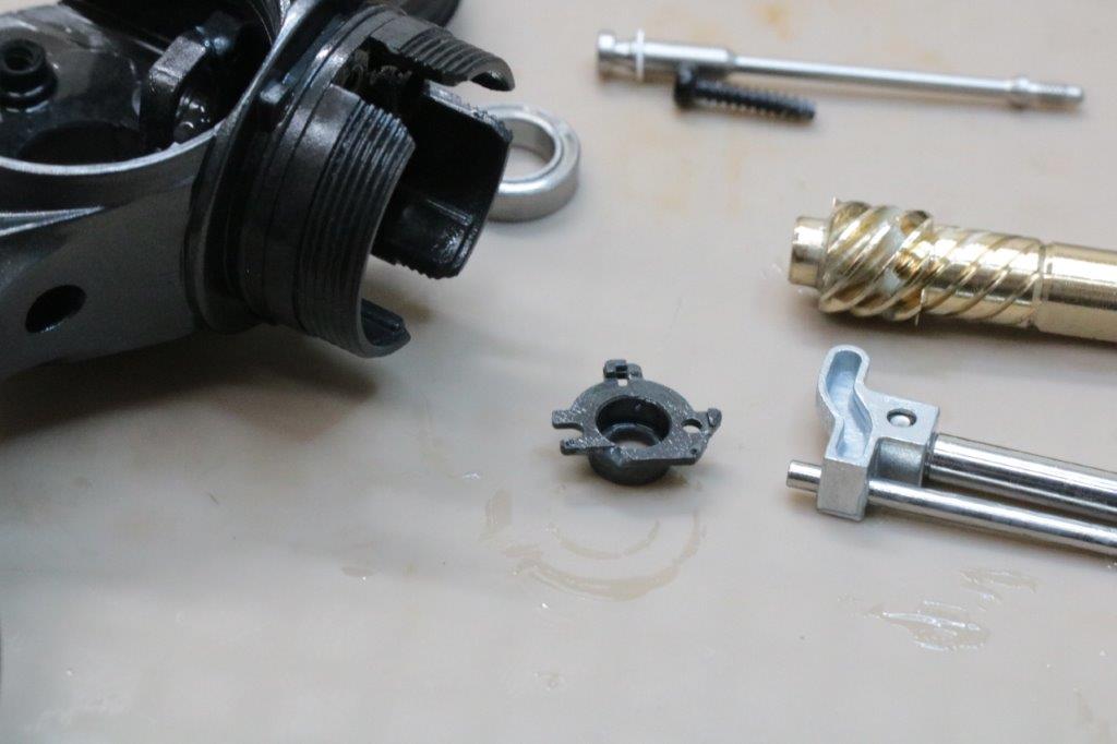 ピニオンギア下のピニオンカラーですが、穴が開いておりオシレーティングポストが刺さります。