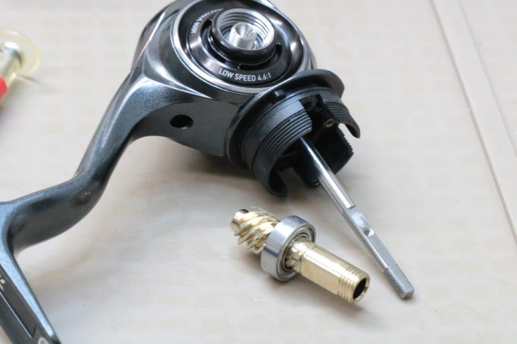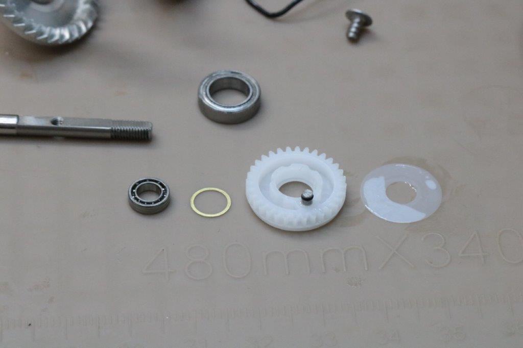 ピニオンギア下がピニオンカラーで受けて、メインシャフト軸径が小径化しています。下は支える構造というより、軸のセンターを取る構造に近いですかね。