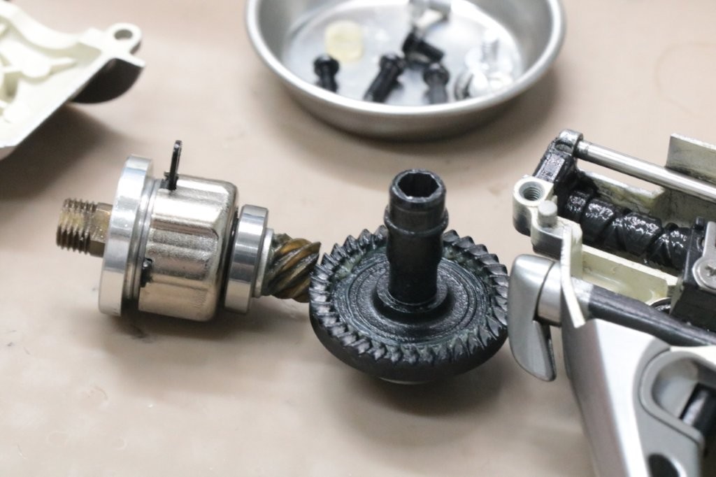 ウォームシャフトの色は銀色ですから、相当真っ黒になっていたことがわかると思います。