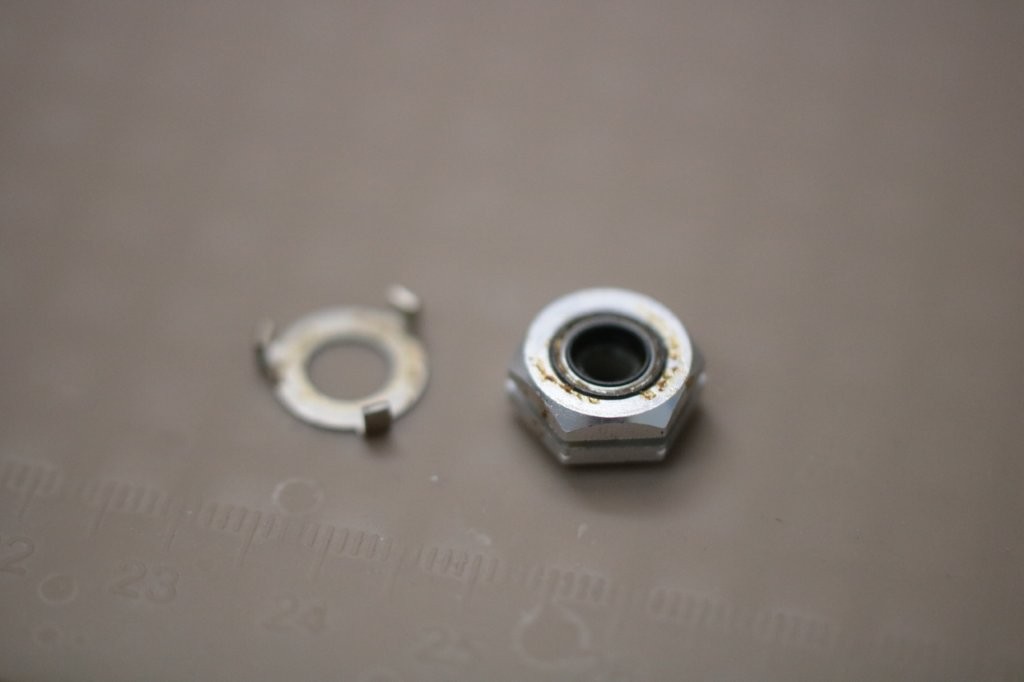 プラ板を接着して少しベール角度を修正。ワッシャーはうまくクリアランスを埋めているようなので、そのままにして組んでおります。