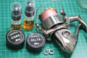 ギア周り、摺動部はアブガルシアのリールグリスを使用しています。