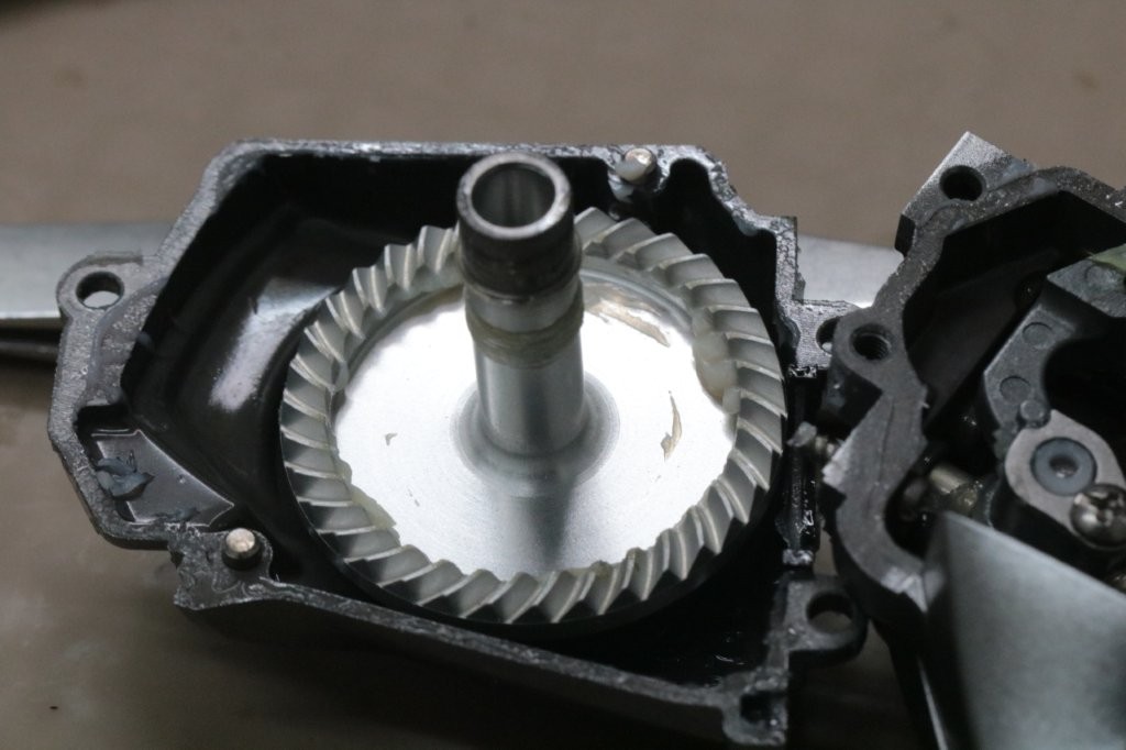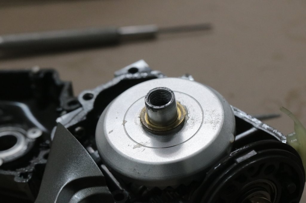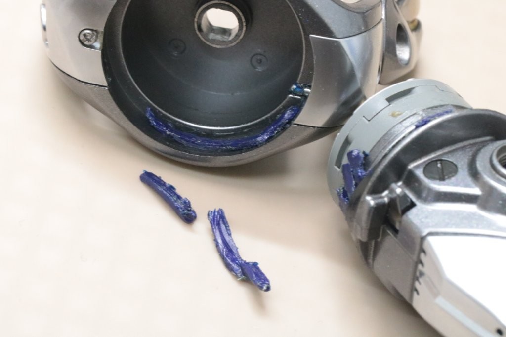 分解していきます。ラインローラーのラインが乗る溝にPEカスがたまっております。