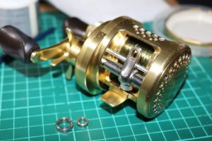スプールは汚れをふき取り、ドラググリスを追加しています。