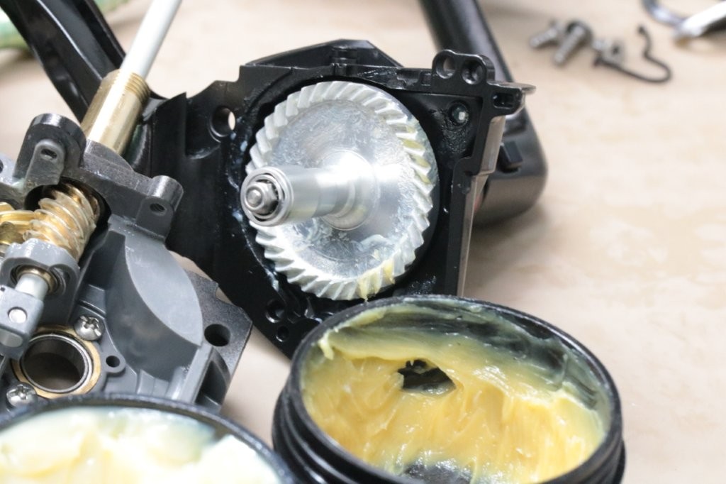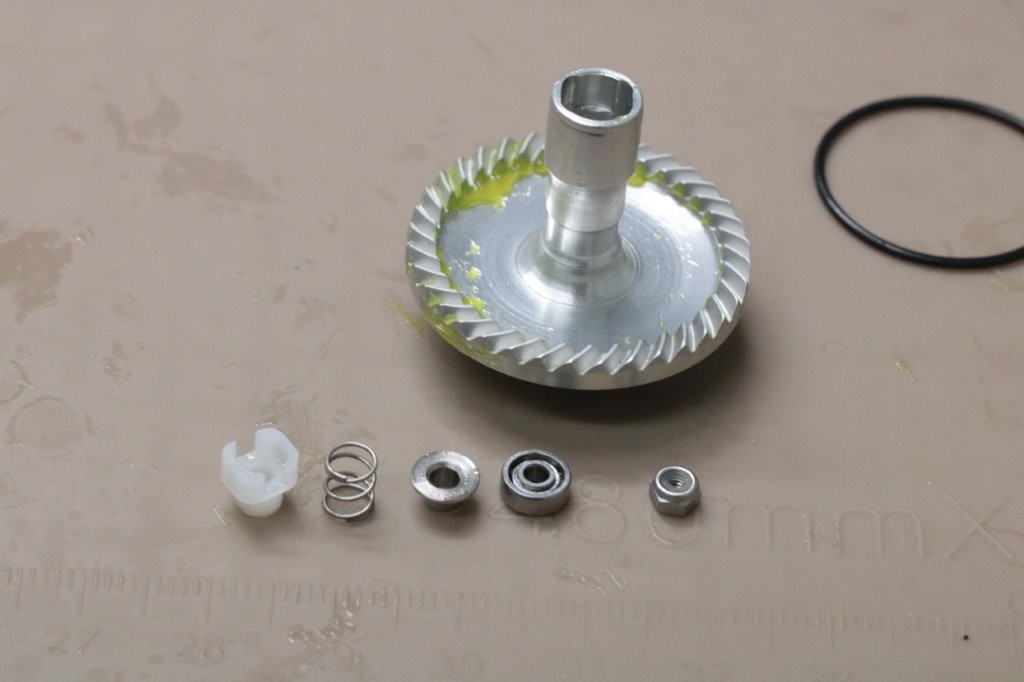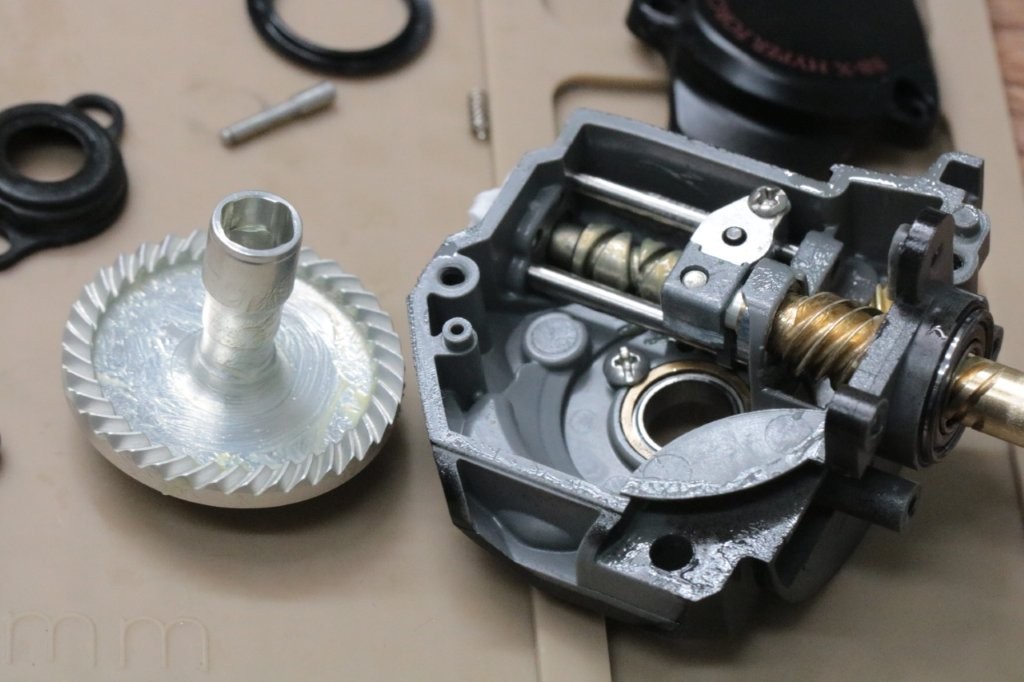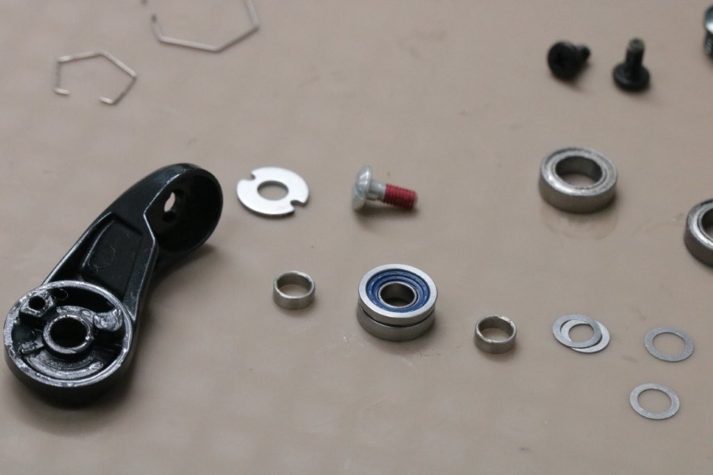 3点交換テストしましたが、ピニオンギア下のベアリングを温存し、ローターナットベアリングとブッシュを合わせました。