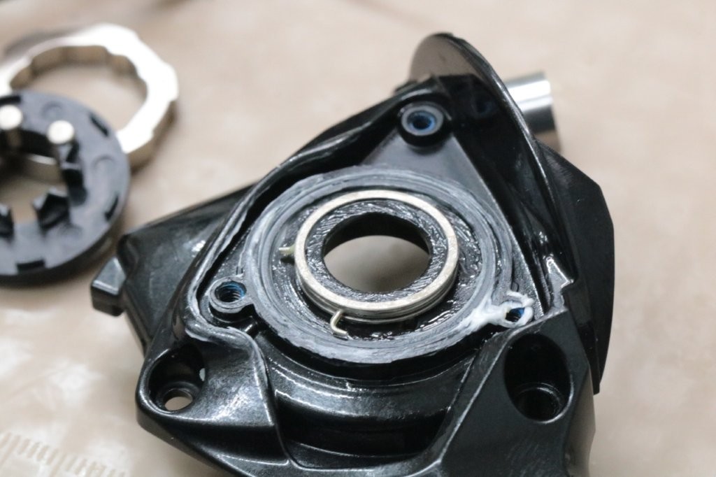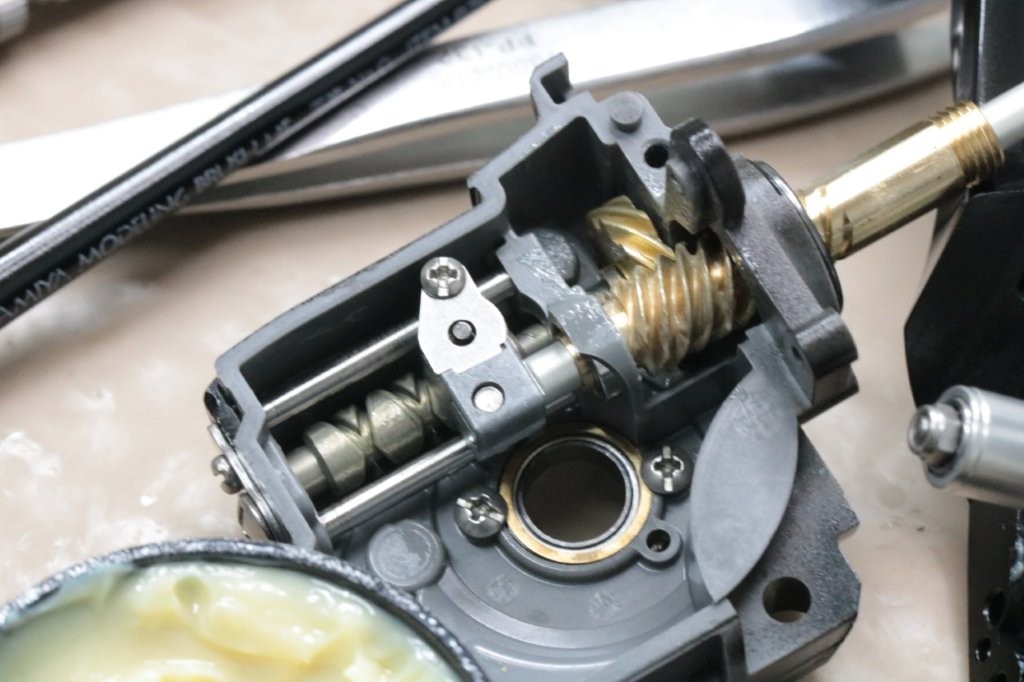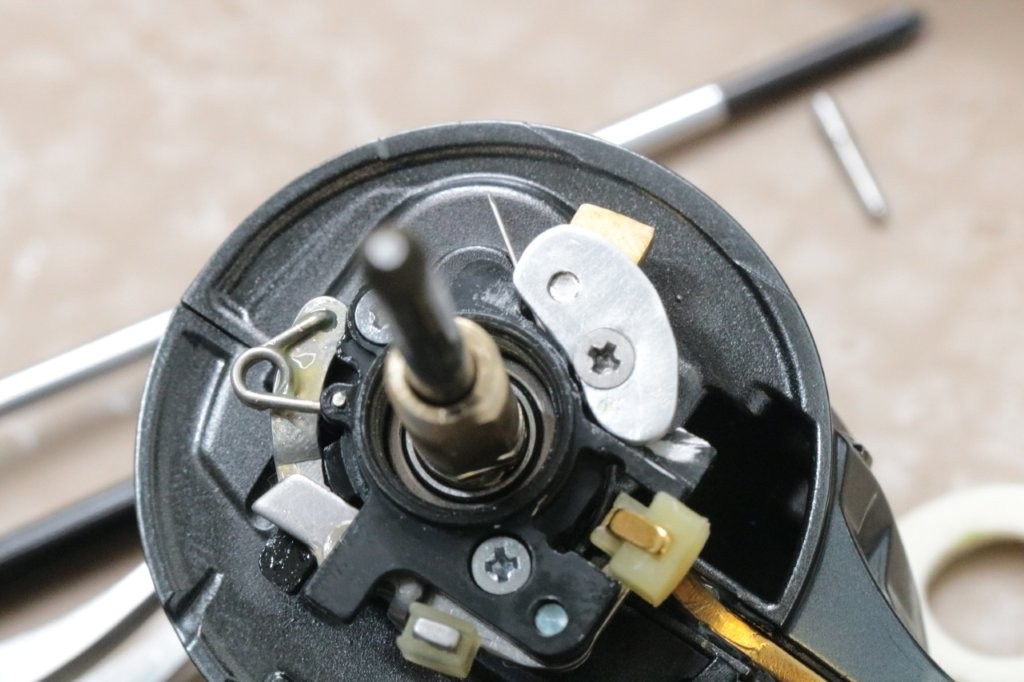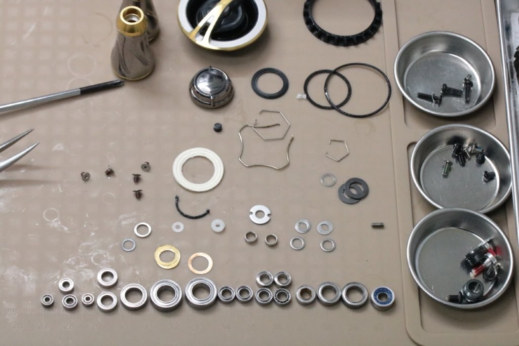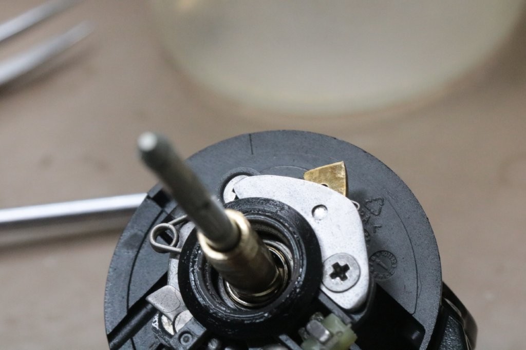 実はフルメタルボディのテクニウムのほうが分解は簡単です。特にベアリング抑え板がばらけずに一式で取れるのが良い。半プラ等のボディが樹脂の個体は抑え板の組み立てが面倒で非常にわかりにくいと思います。