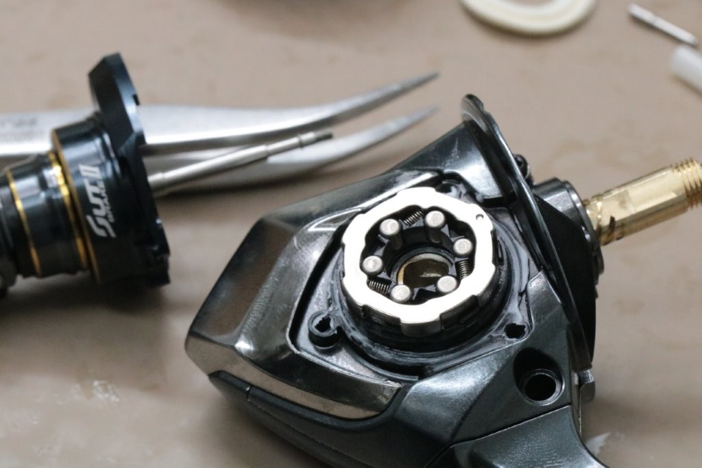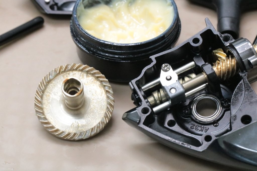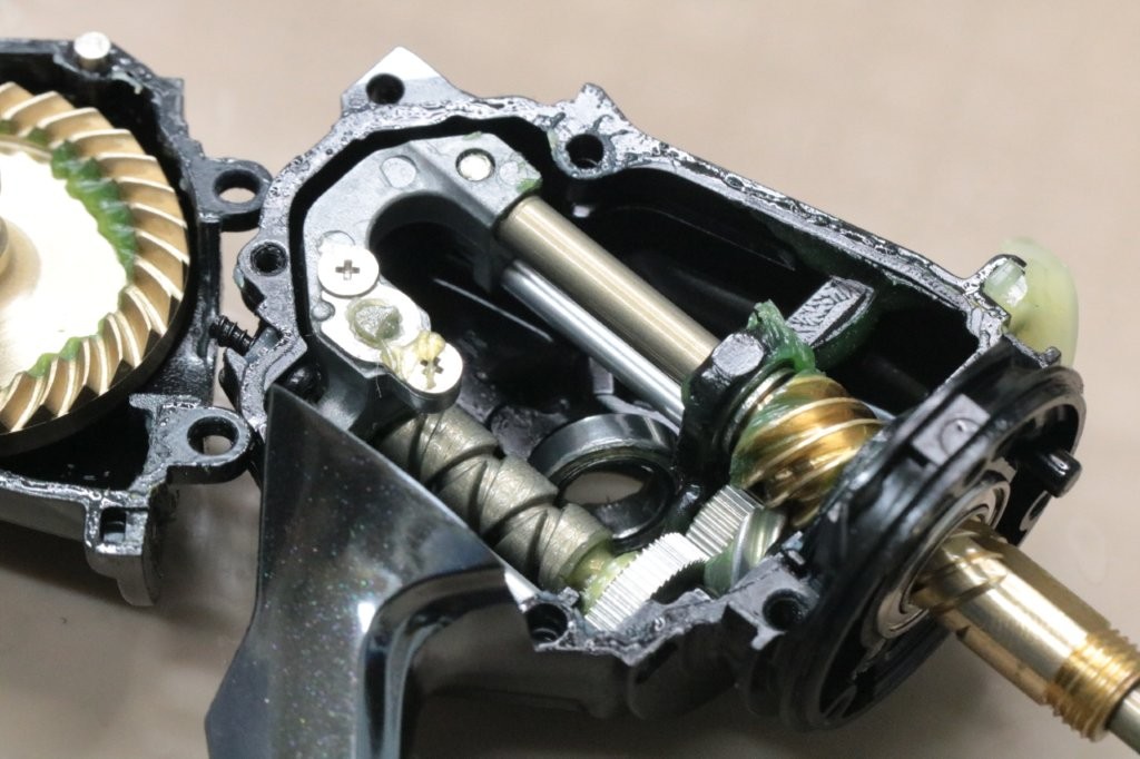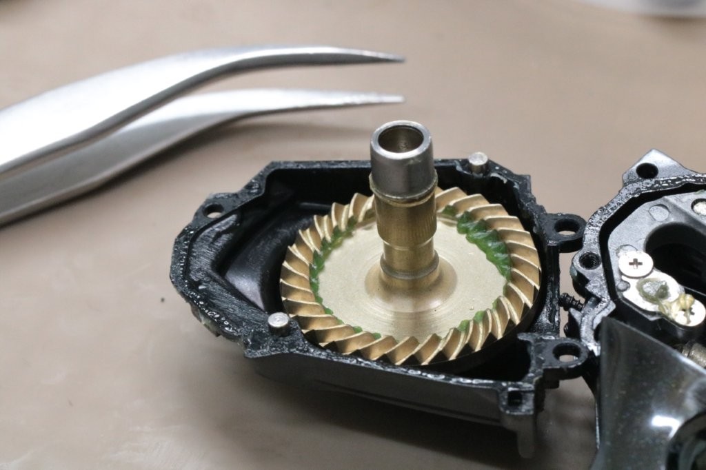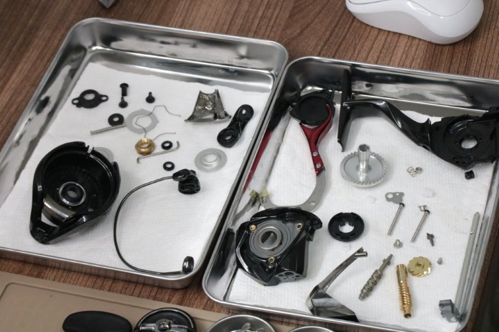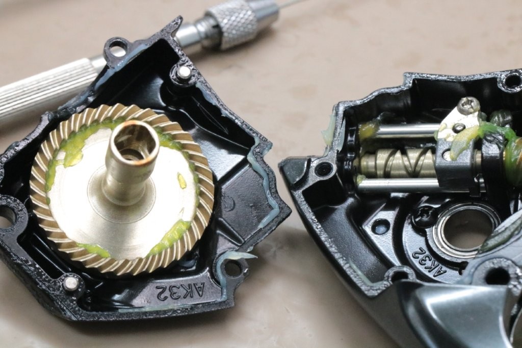 実はフルメタルボディのテクニウムのほうが分解は簡単です。特にベアリング抑え板がばらけずに一式で取れるのが良い。半プラ等のボディが樹脂の個体は抑え板の組み立てが面倒で非常にわかりにくいと思います。