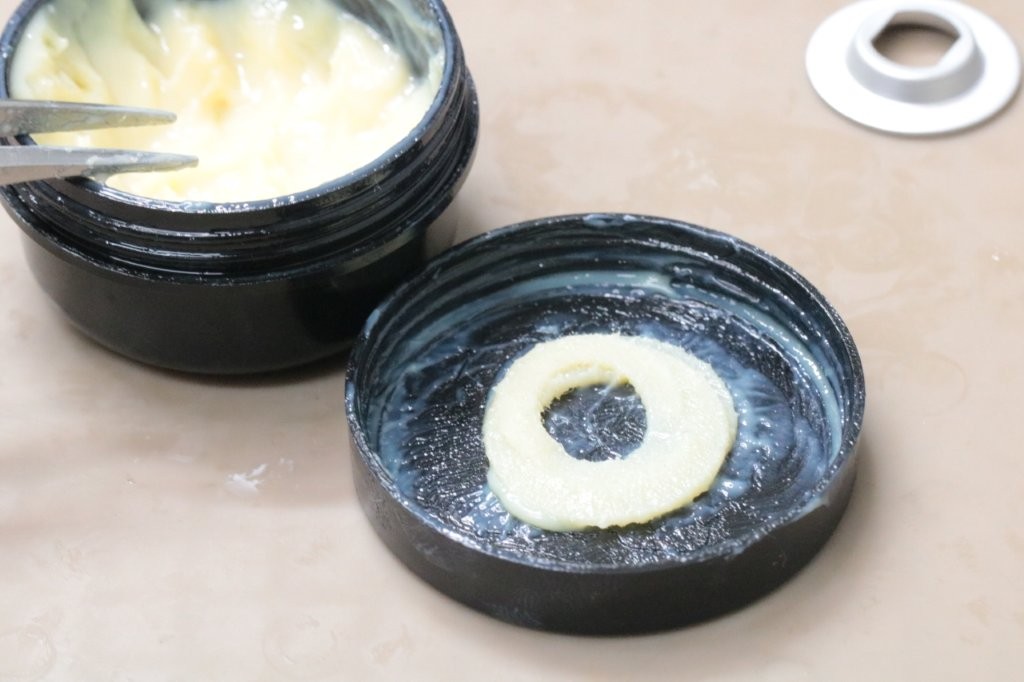 かなり薄く塗布します。ケミカルによっては巻重りが出やすいんですよね。