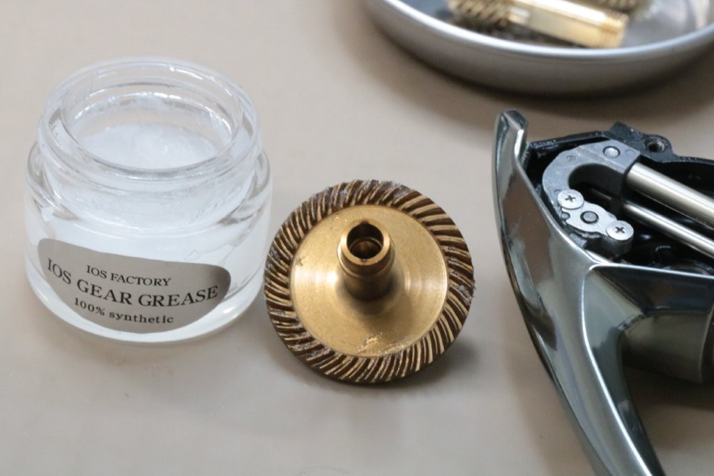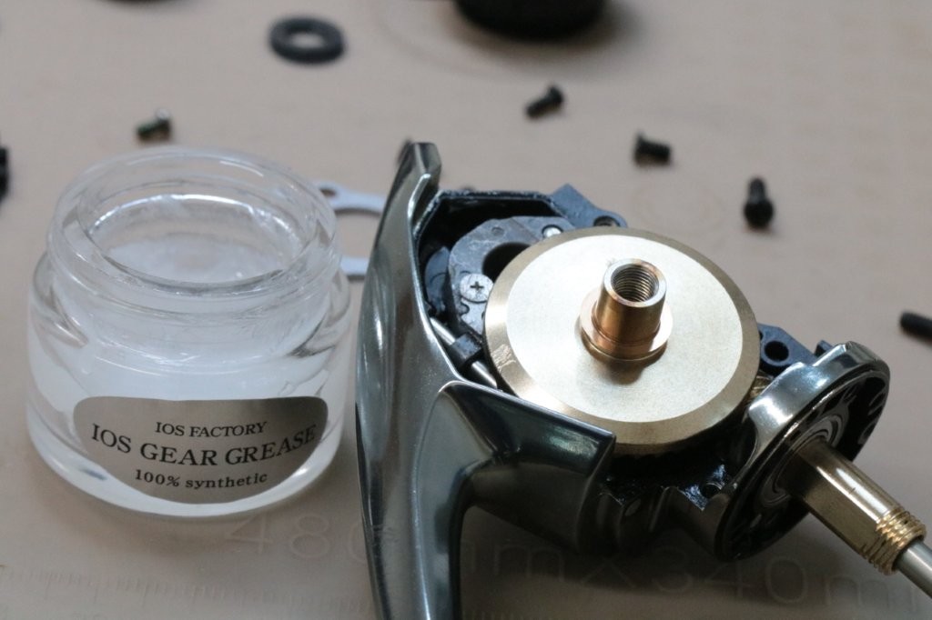 元々ギアはIOSのギアグリスを添付していました。また中間ギアにはシマノ純正DG06を、ウォームシャフトにはBOREDのTHETAを使用しております。
