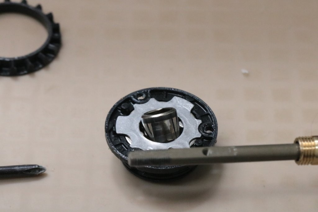 こちらの個体のほうがギアの消耗が大きいように感じますね。ローラークラッチの汚れがあります。
