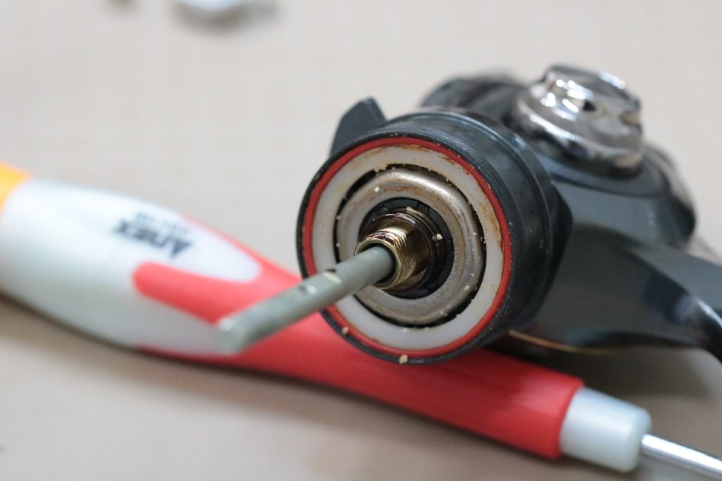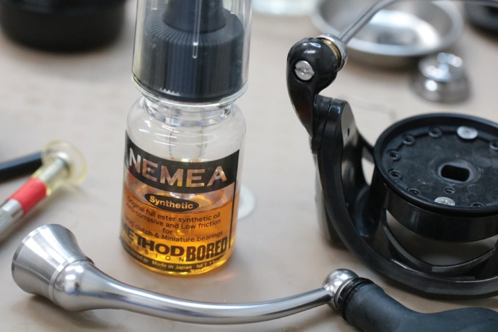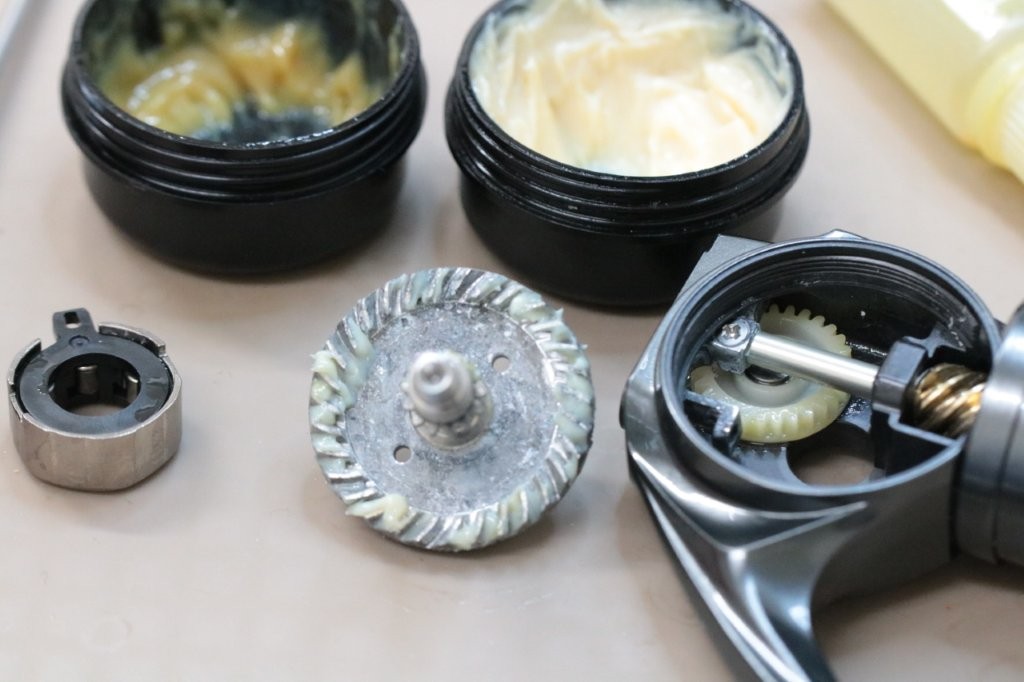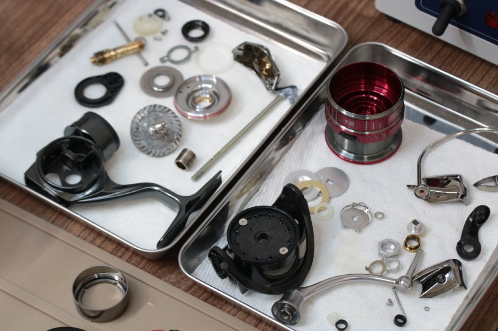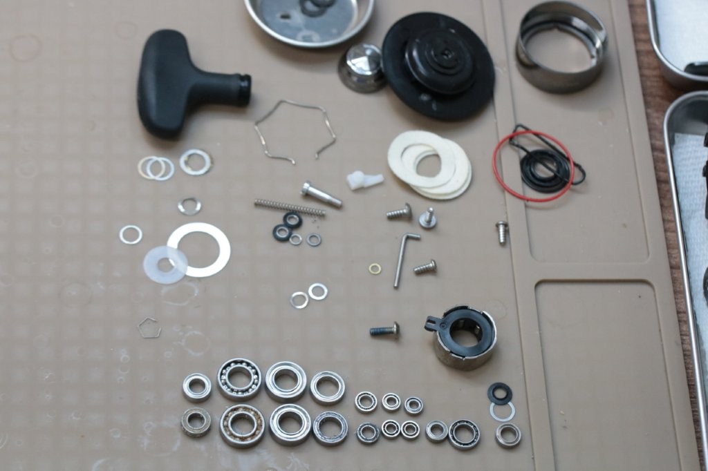 ローターナットベアリング、ハンドルノブ、スプールの3点のみ温存します。