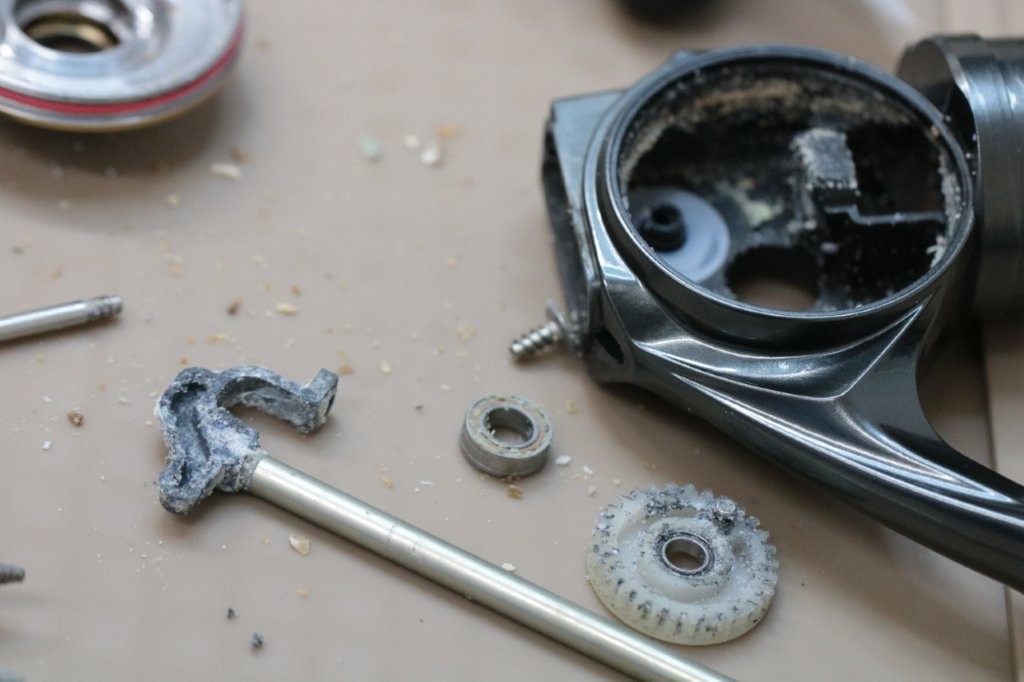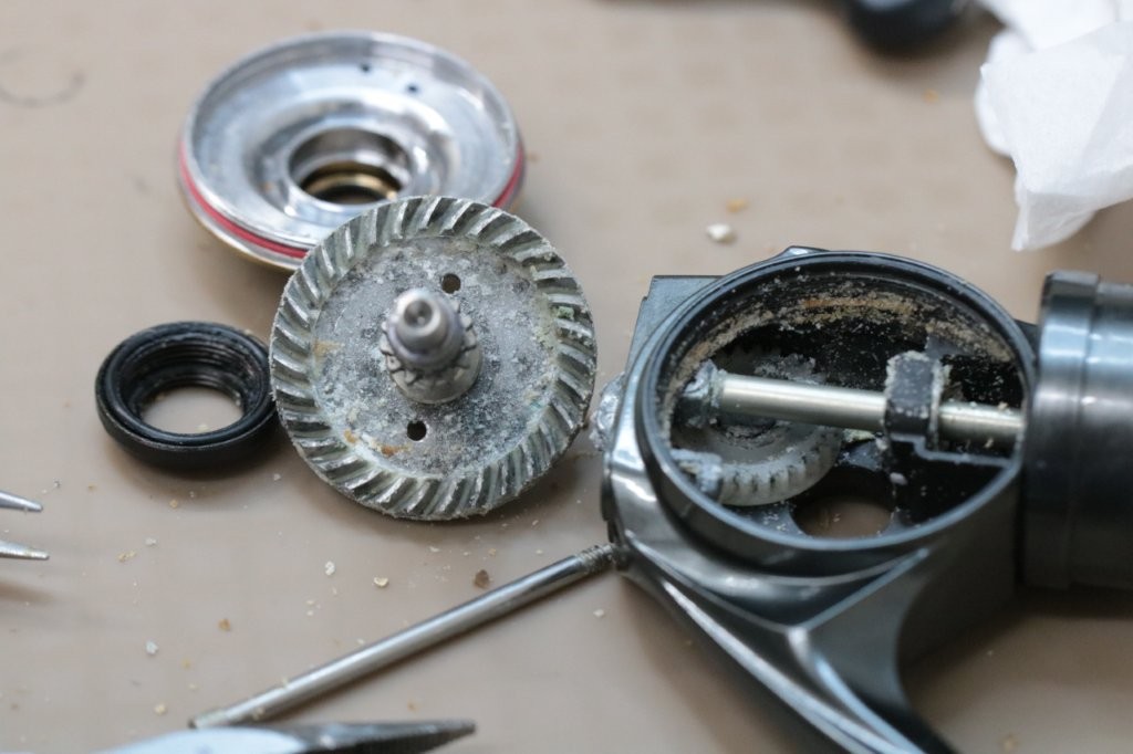 見た目以上に普通に動きますが、ギアノイズを少し拾いますね。ワンウェイクラッチも交換したほうがよさそうではありますが、あまり変化がないかもしれません。