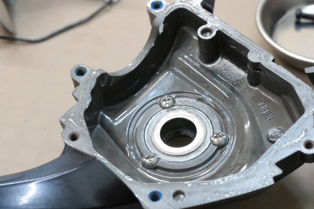 ハンドル側のベアリングもベアリングのグリスが少々抜けていますかね。