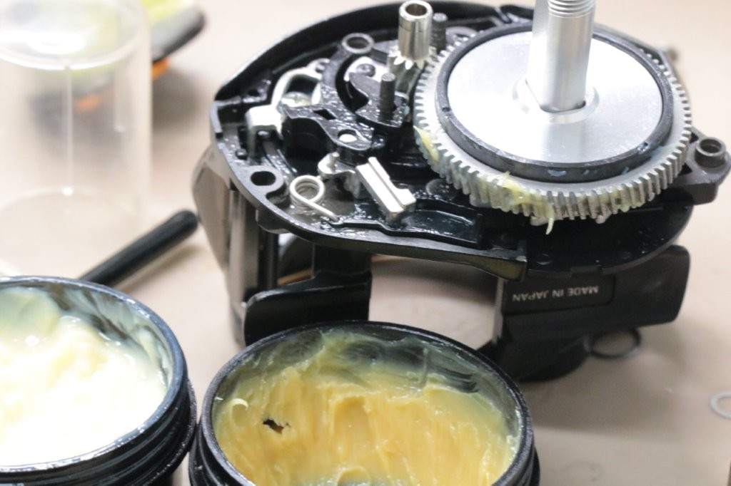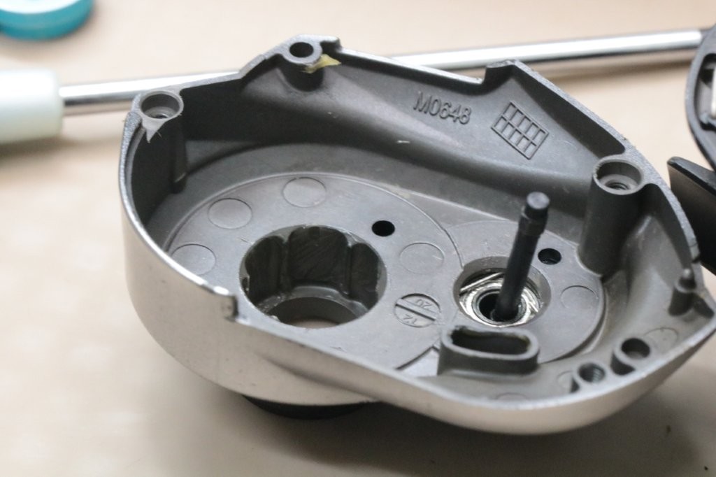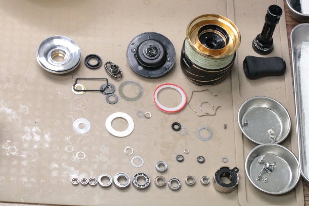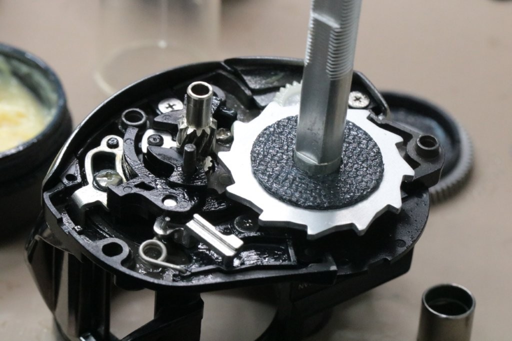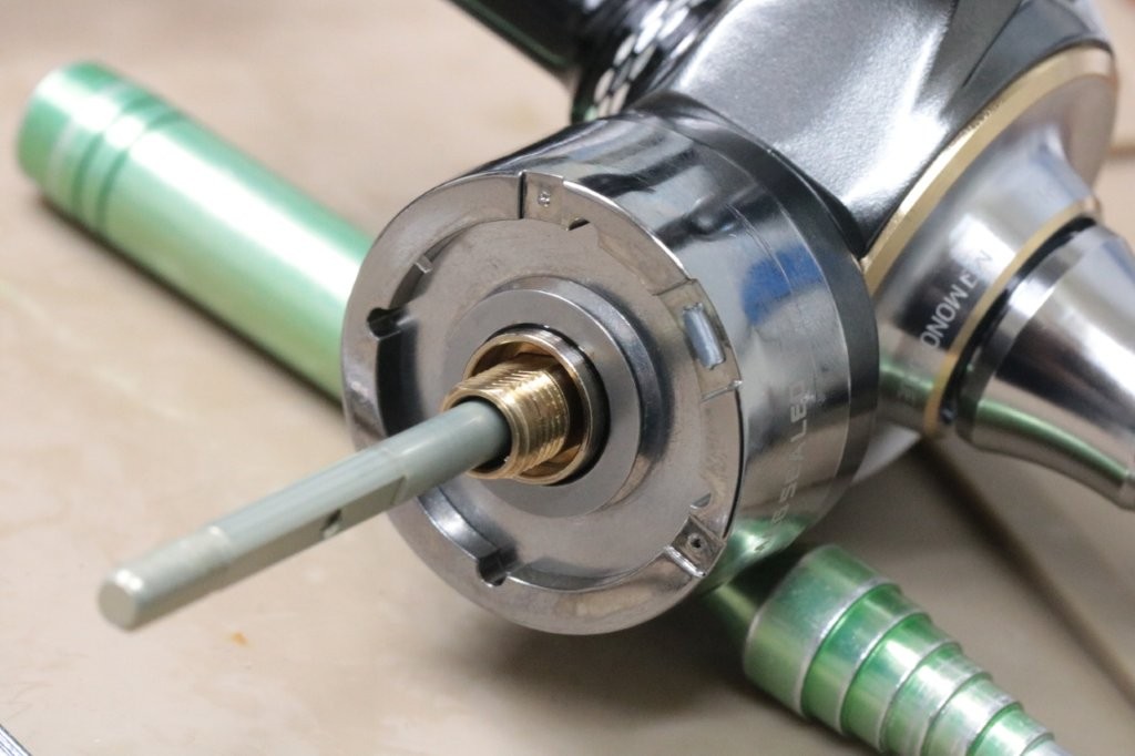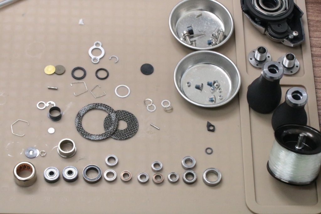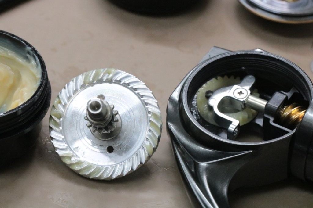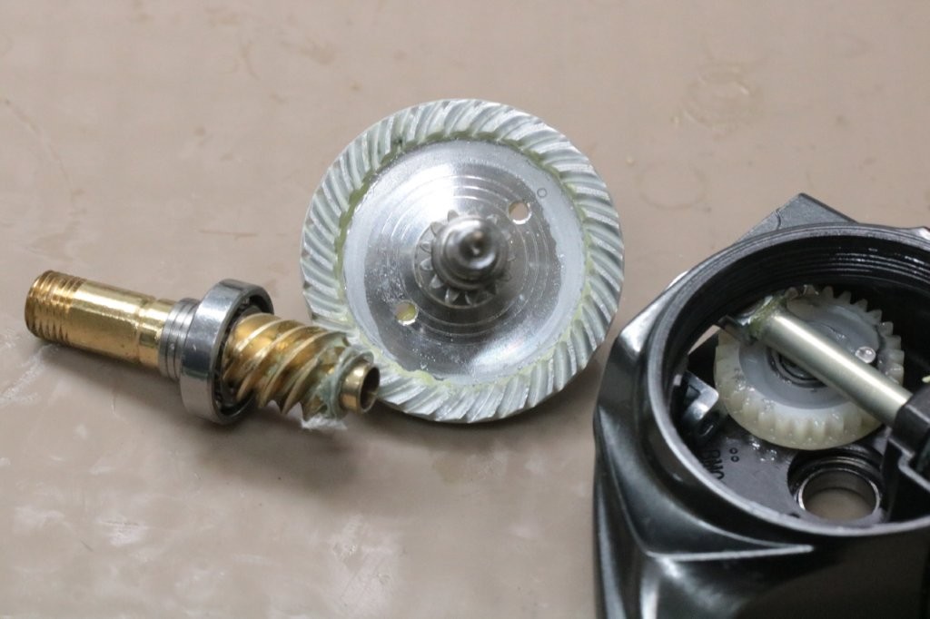 ドライブギア軸、ハンドルノブを1点交換。ピニオンボールベアリングも交換で作業しますが、あとで元に戻しております。