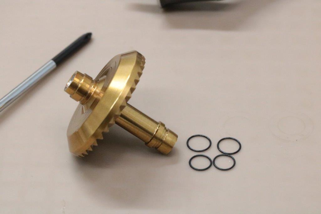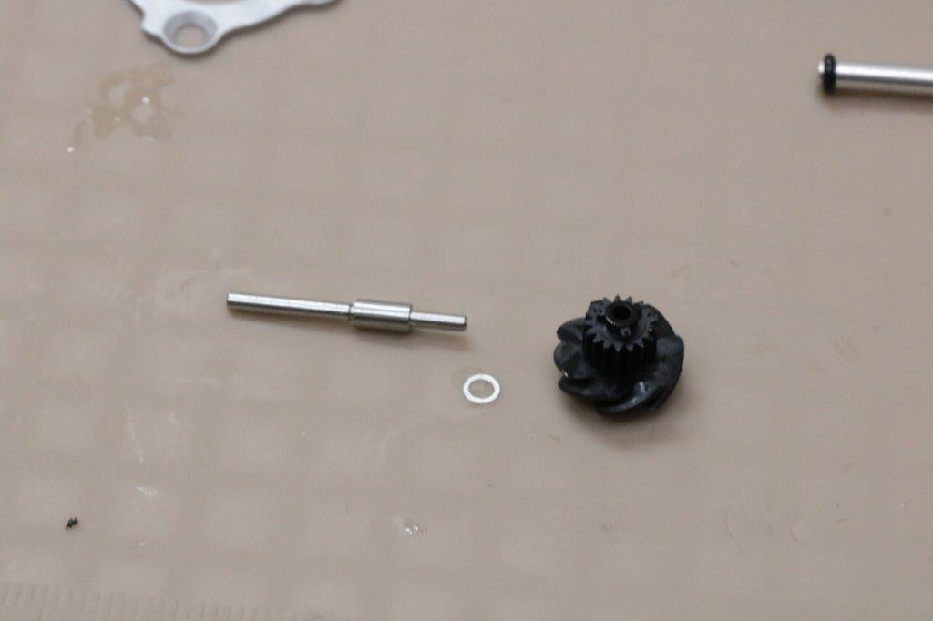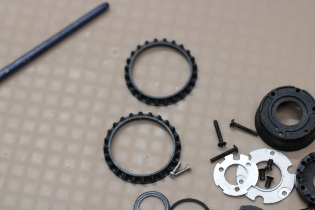 22ステラの極みチューンですが、ピニオンギア下のウェーブワッシャーは温存しますが、ドライブギア、ウォームシャフト下、ドライブギアOリングの小径化、中間ギア軸バネのシム調整となります。