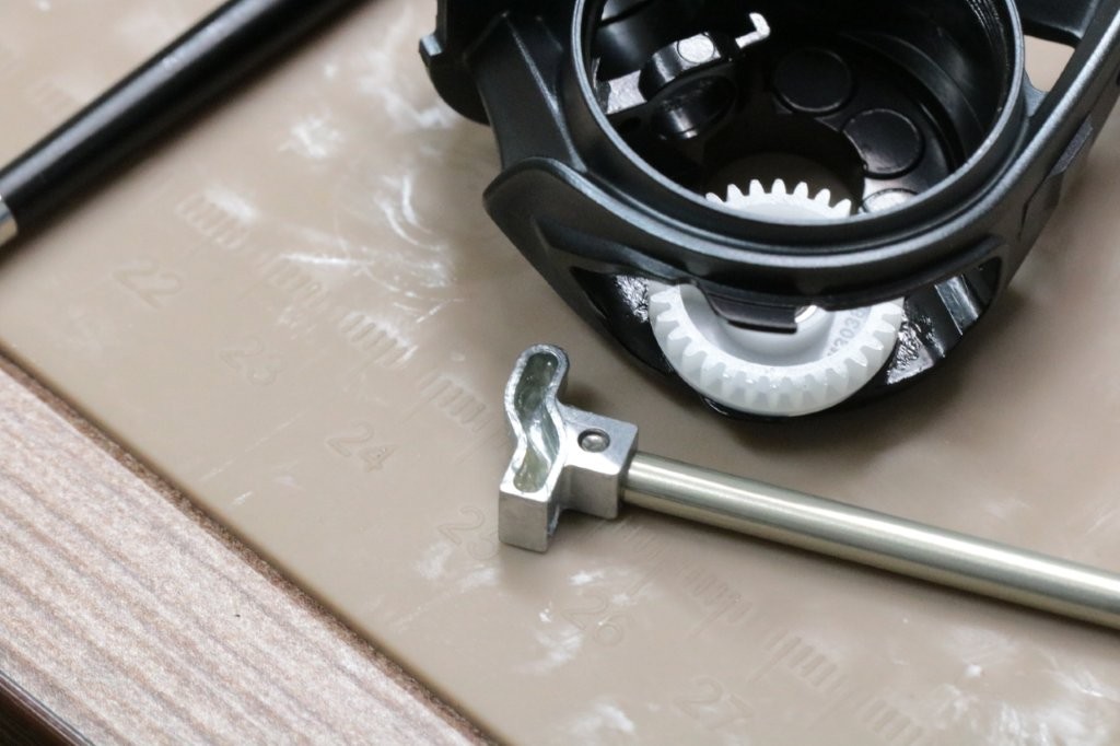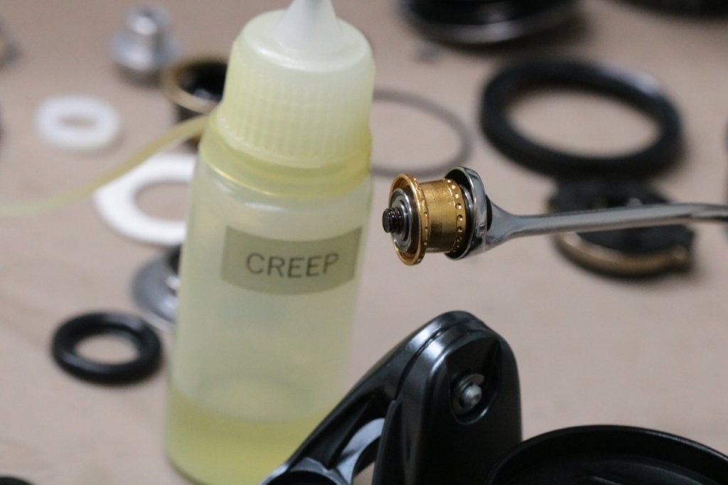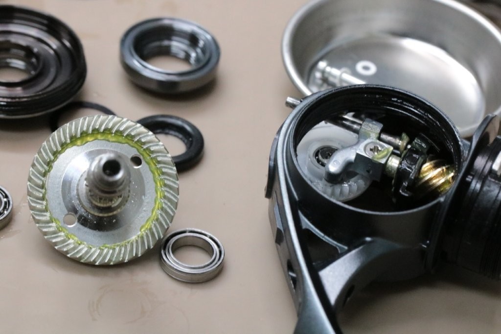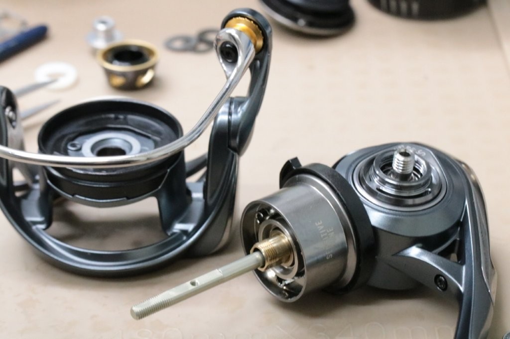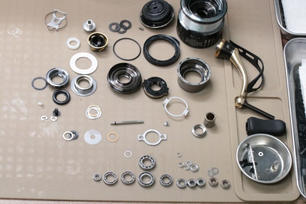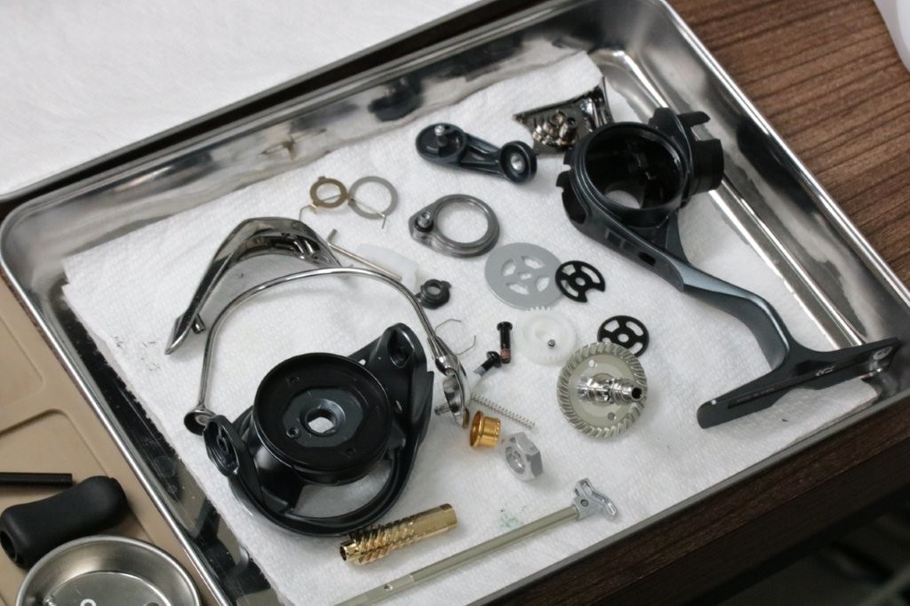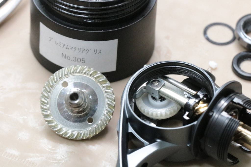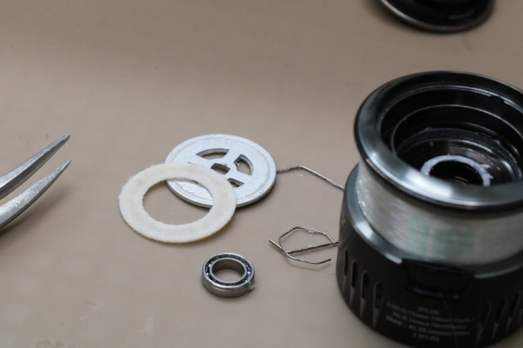 中古で購入された個体で、購入時は違和感が無かったそうですが、ご依頼時点でゴロつき感があり。軽い巻き心地にしたいということでご依頼となります。