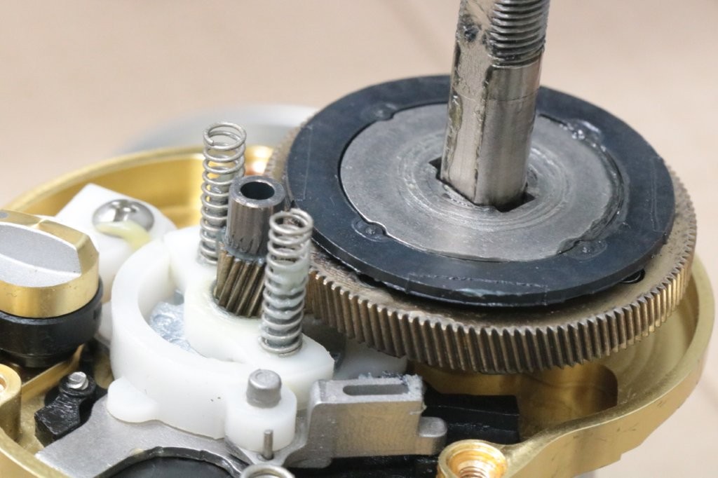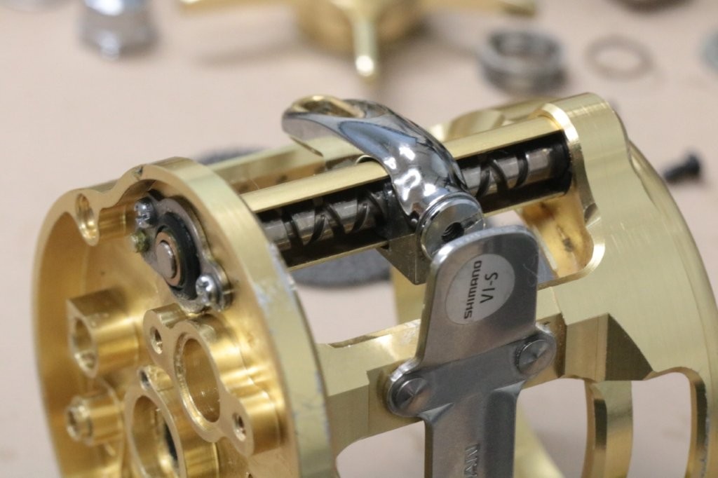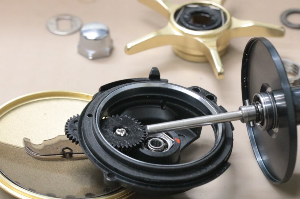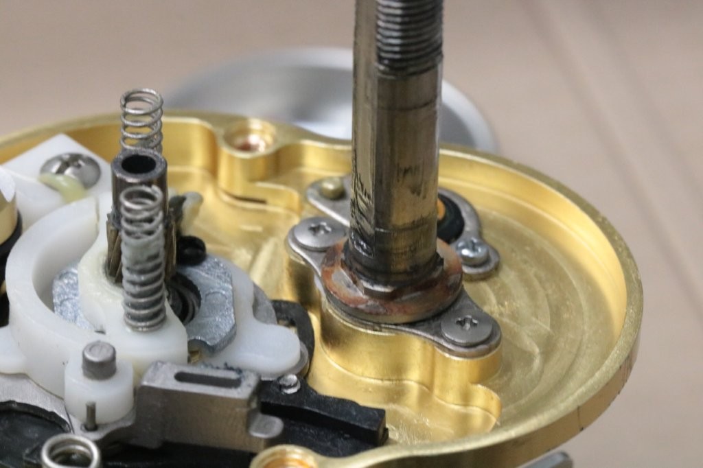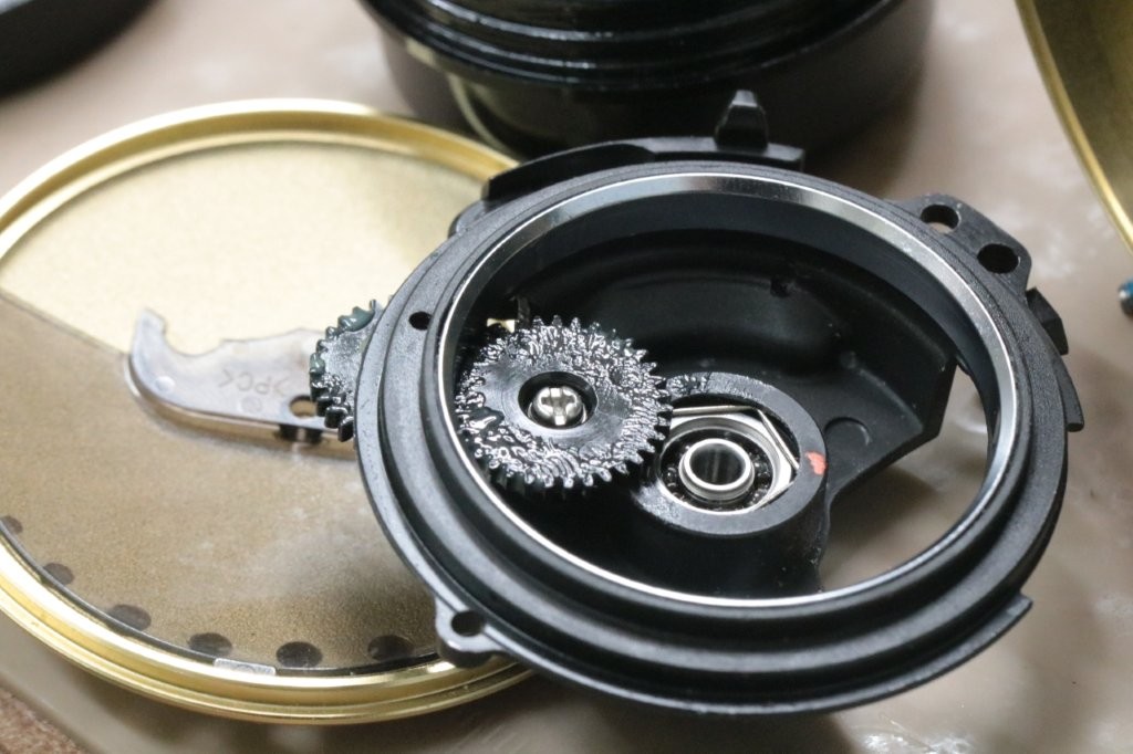 後で気づきましたが、ウォームシャフトギアが潰れていて連動レベルワインドにノイズがあるんですよね。グリスが抜け気味で、汚れも目立ちます。