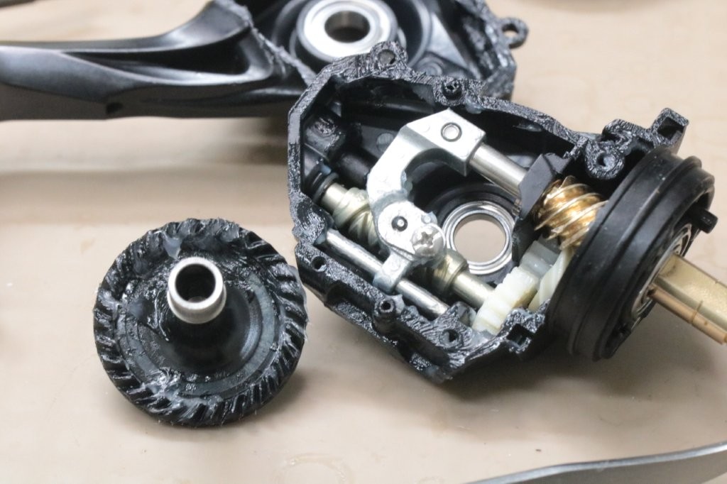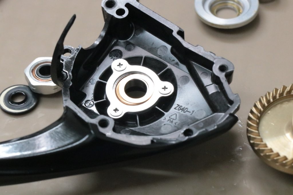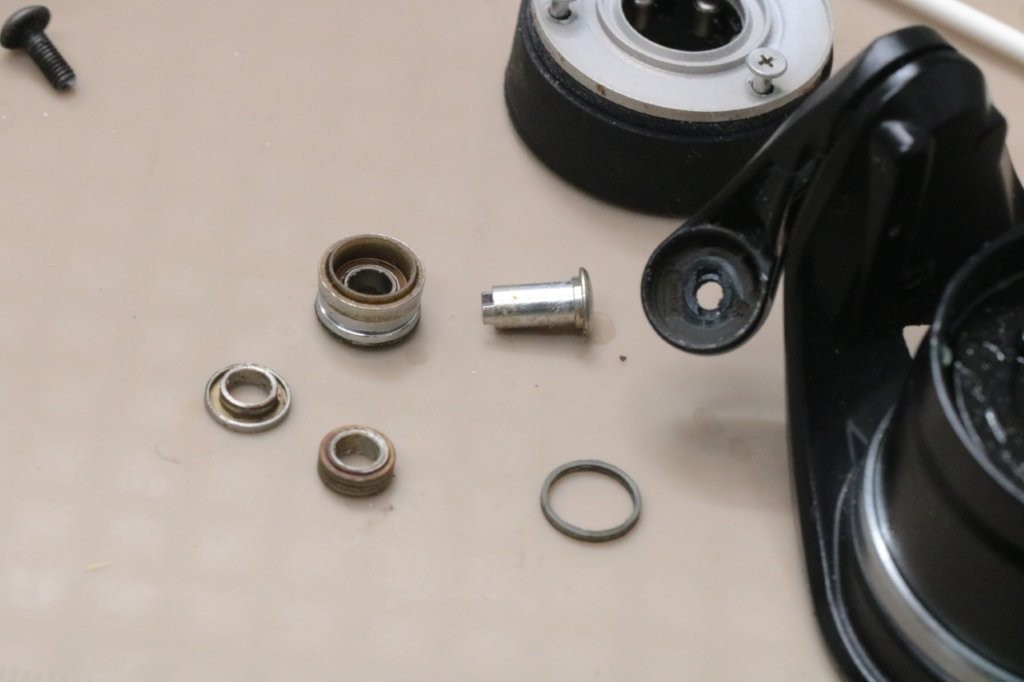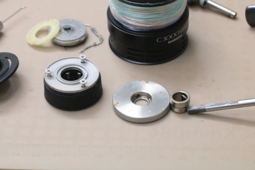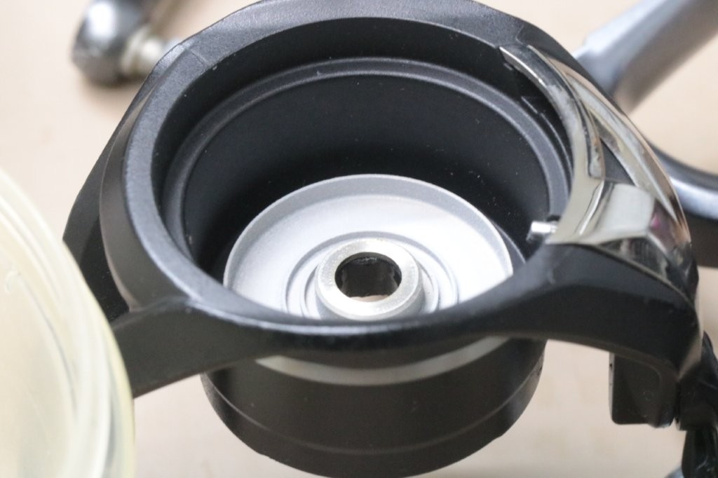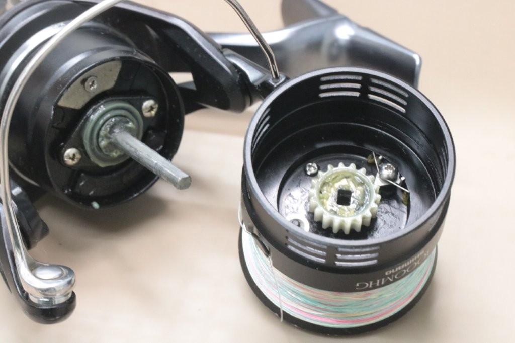 スプールを取ると受け部も一緒に外れてしまいました。グリスが多い。