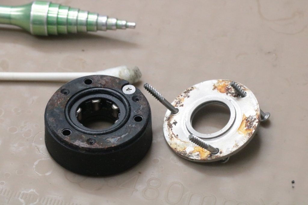 ローラークラッチにも。ローラークラッチ内部には錆はないので、Xプロテクトの盲点みたいなところが錆びてますね。