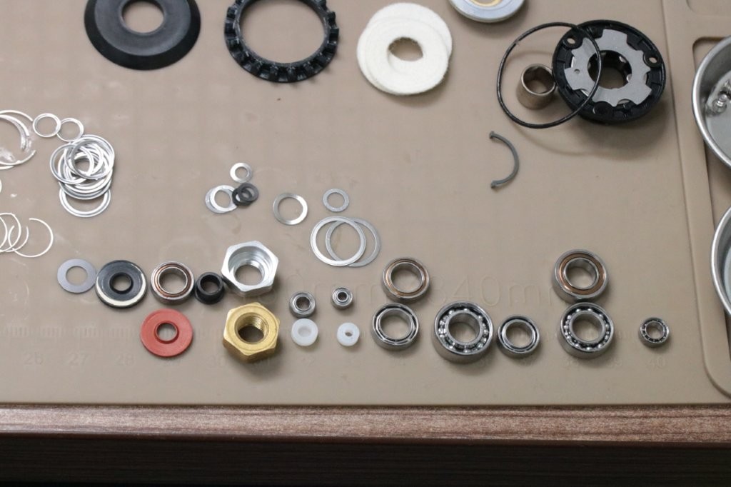 ドライブギア左右は汎用ステンレス、それ以外は高耐食ベアリングに交換します。
