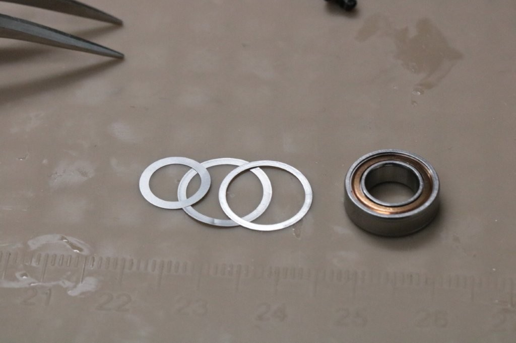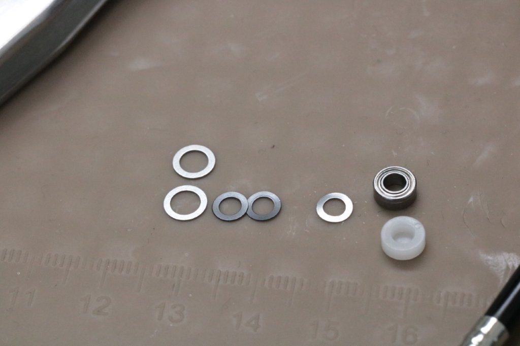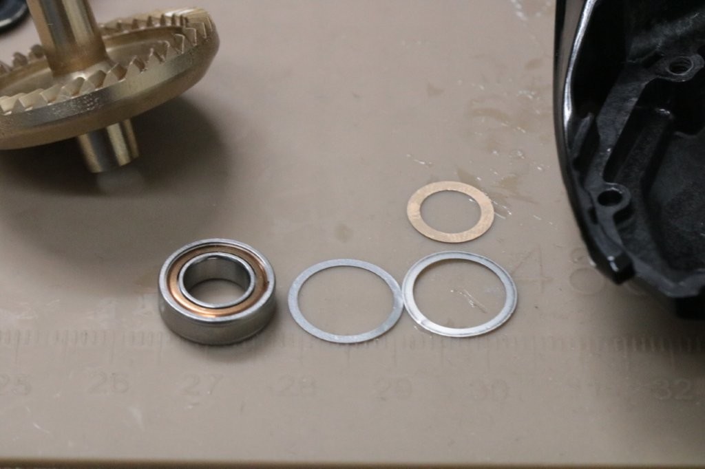 メインシャフトが下がっているので、ウォームシャフト下にシムを追加。0.20mm分入れます。