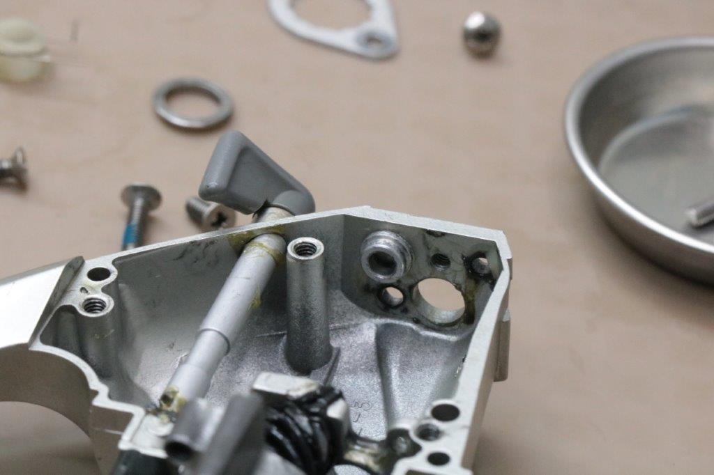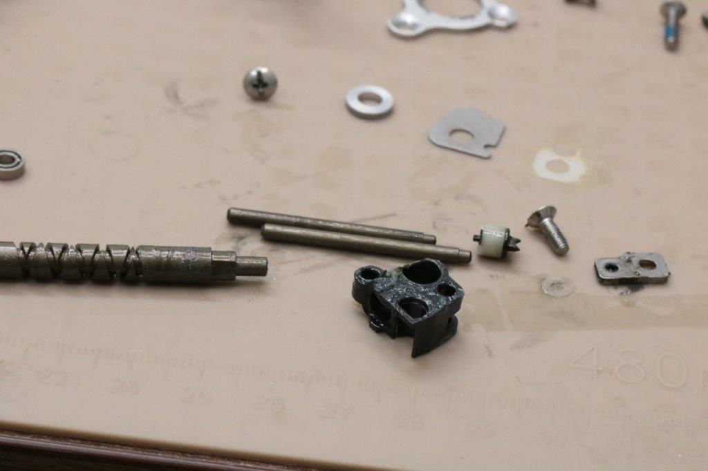 ストッパーをオンにした際にギアが当たり、からからと鳴ってしまう状態だそうです。なお、ボディガードを外してウォームシャフトを分解してしまったそうで、きちんと組みあがっていない状態とのこと。