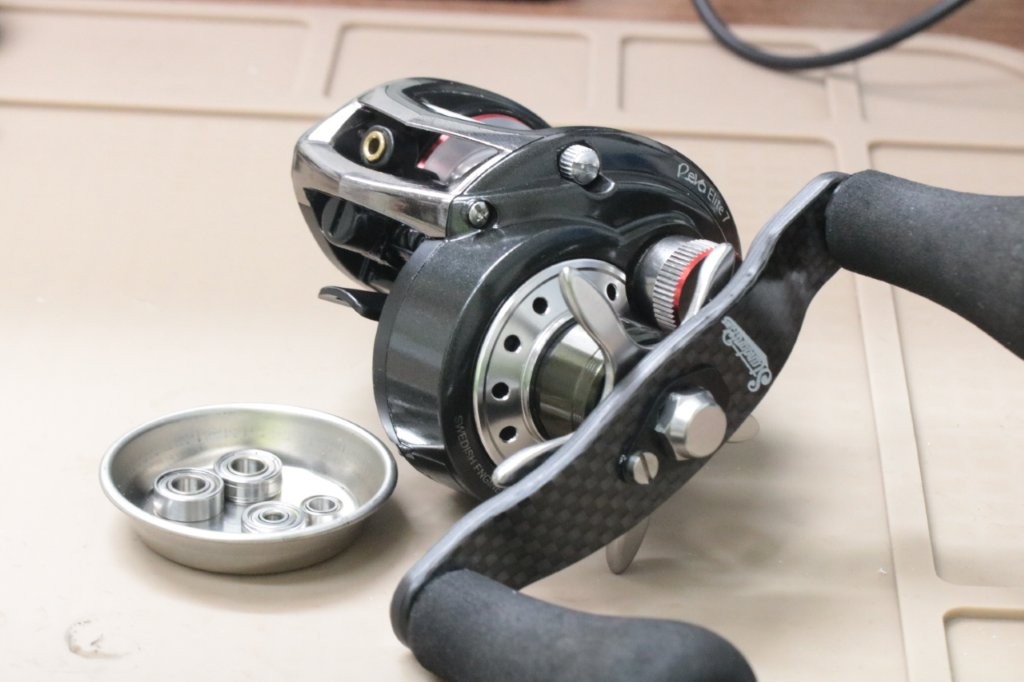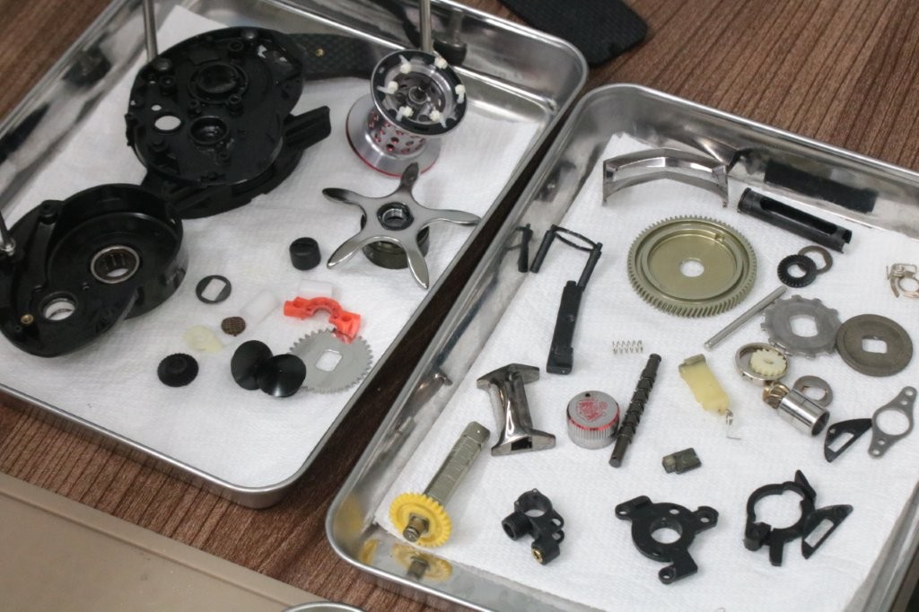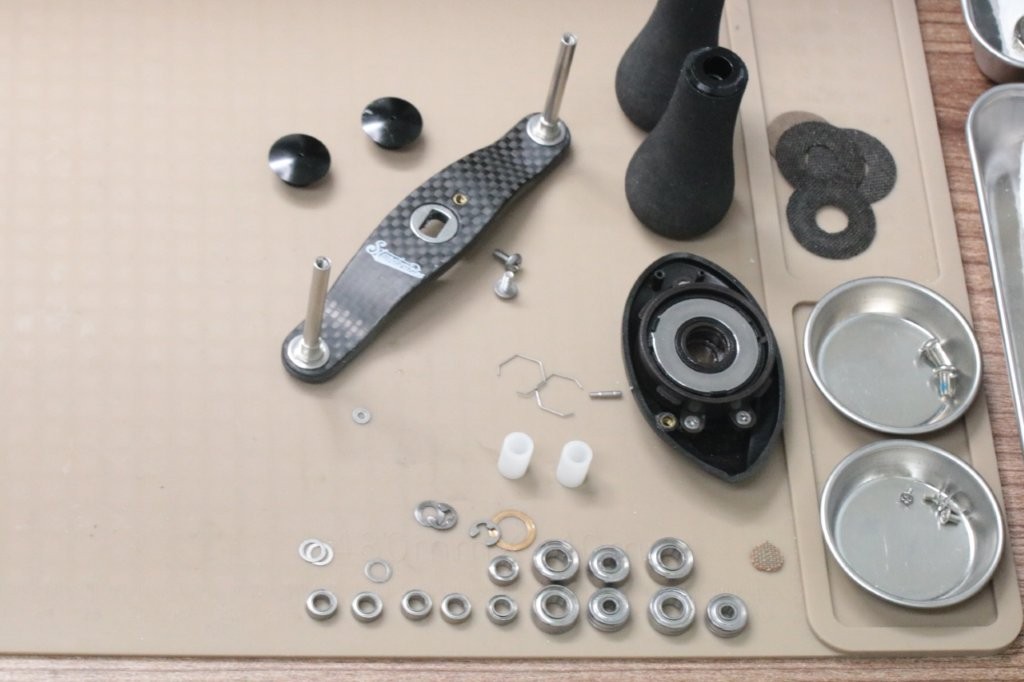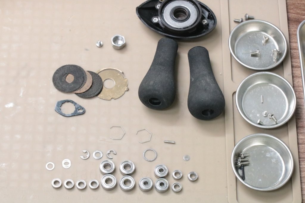 ベアリングはドライブシャフトとレベルワインド。スプールベアリングとメカニカルブレーキ部の4点交換ですね。