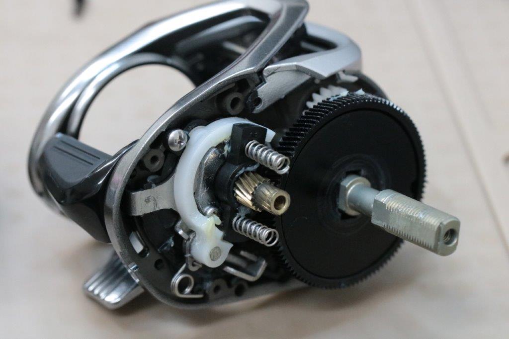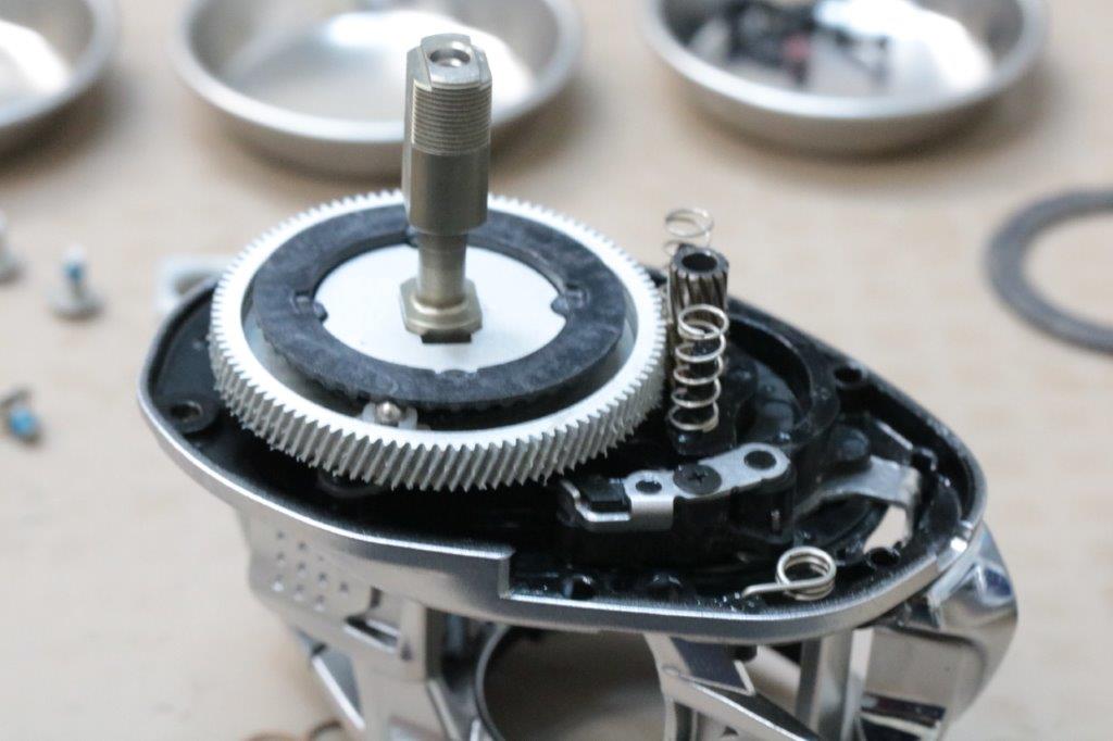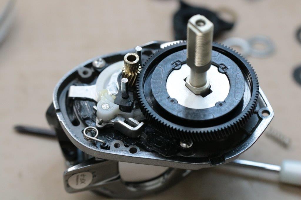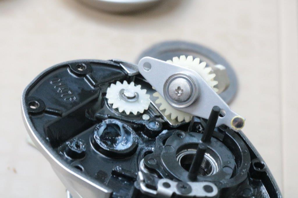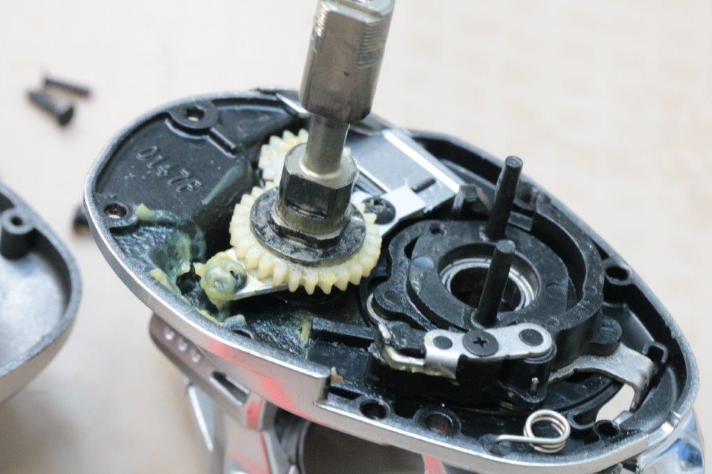 ウォームシャフト、レベルワインドもグリス汚れが強いですね。