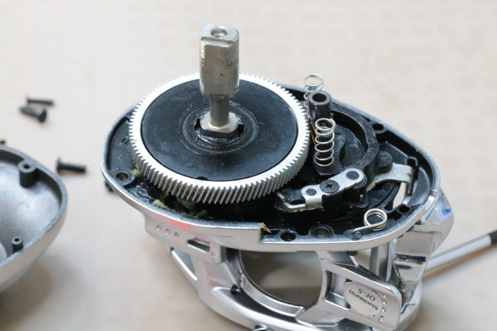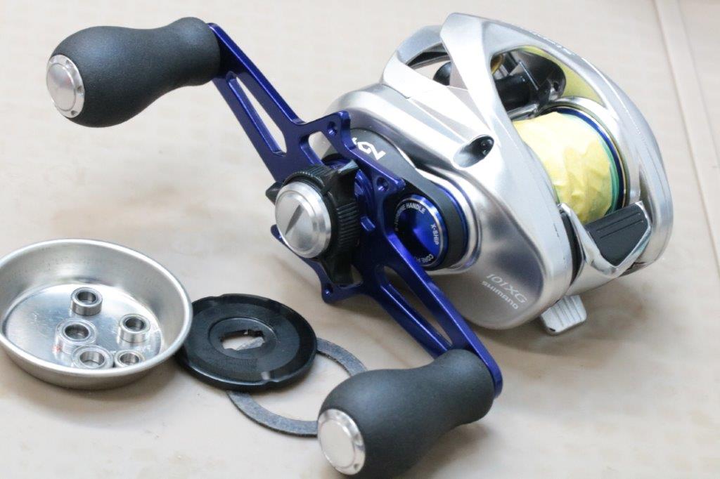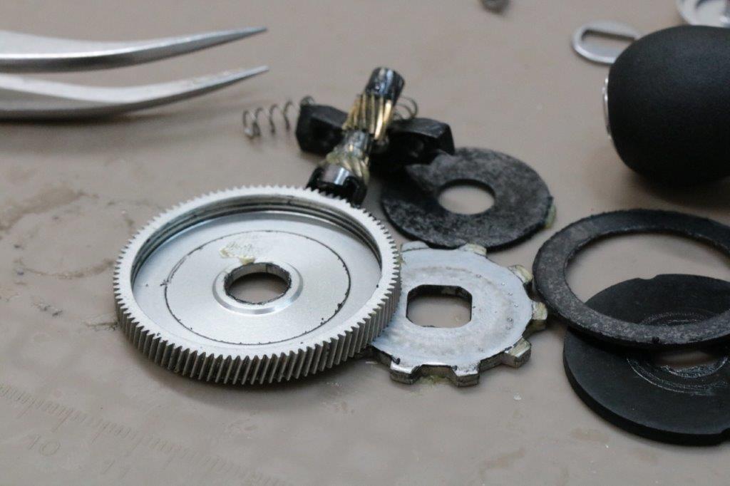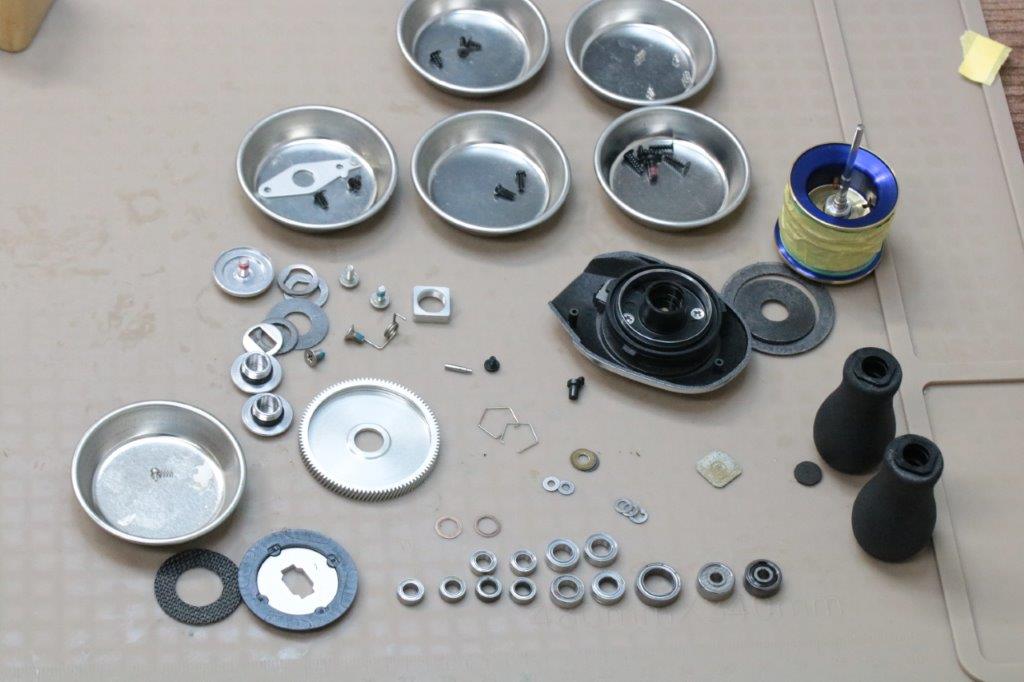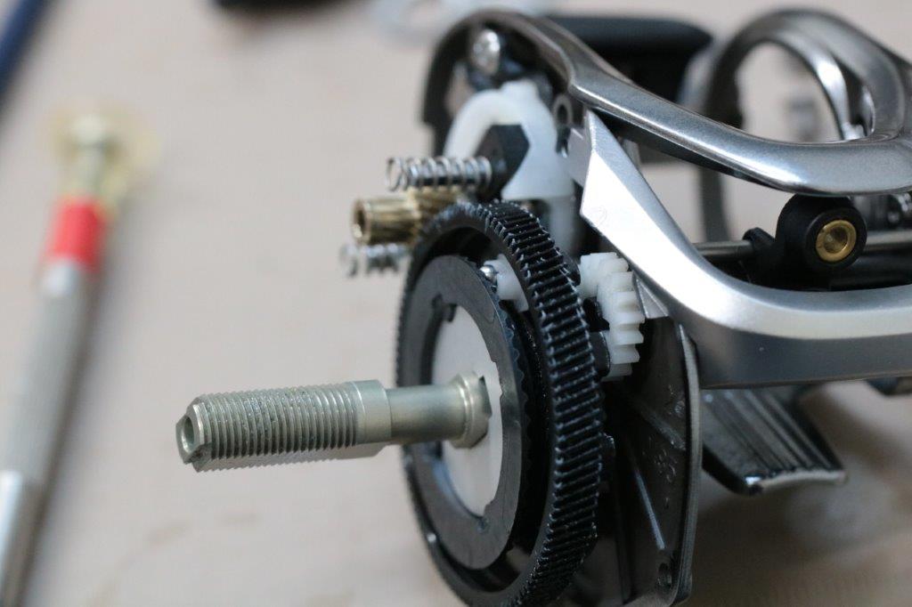 ベアリングですが、ハンドルノブを2点、ドライブギア軸とメカニカルブレーキ部の2点を交換です。