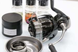 音がもう少し欲しいですが、テンションが強いと使いづらいと思いますので、ラインテンションが30gでずるずると出るレベルに再調整しています。