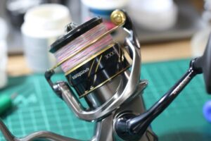 スプールベアリングも外し、サイドカバーもばらして洗浄しました。