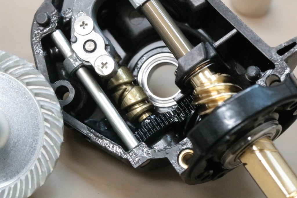 ピニオンギア下のベアリングを交換し、グリスのままで仕上げます。