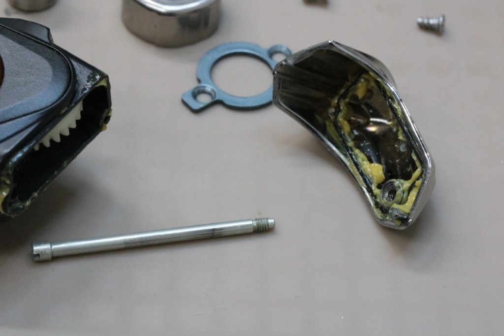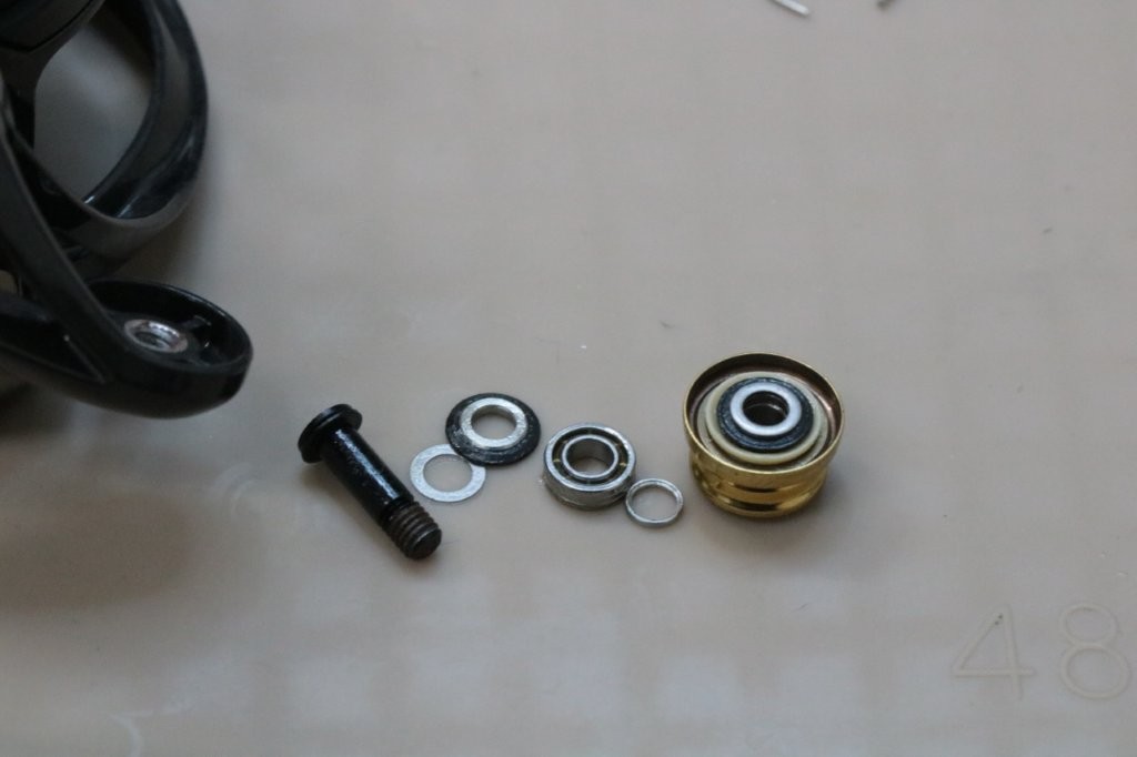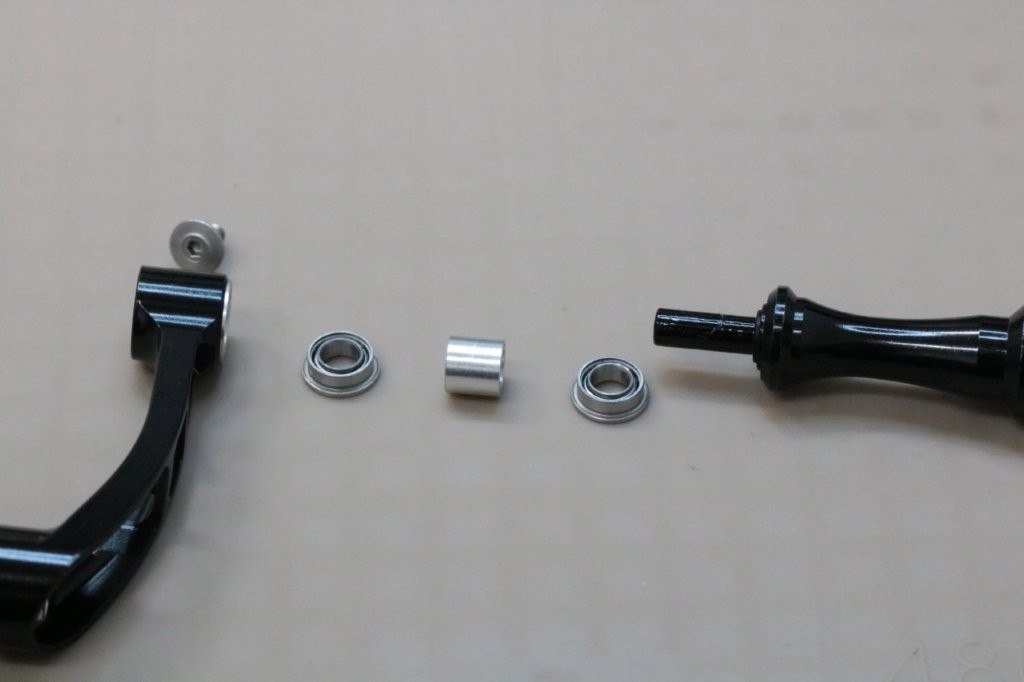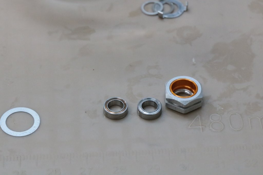 分解してみて、フランジベアリングのノイズがあるんですよね。ただ、ベアリング交換してもノイズが取れない、もしくはすぐにノイズが立つ可能性があります。