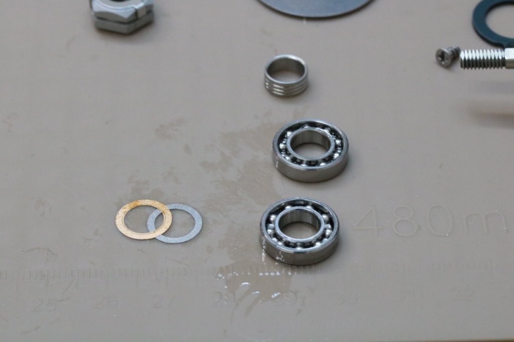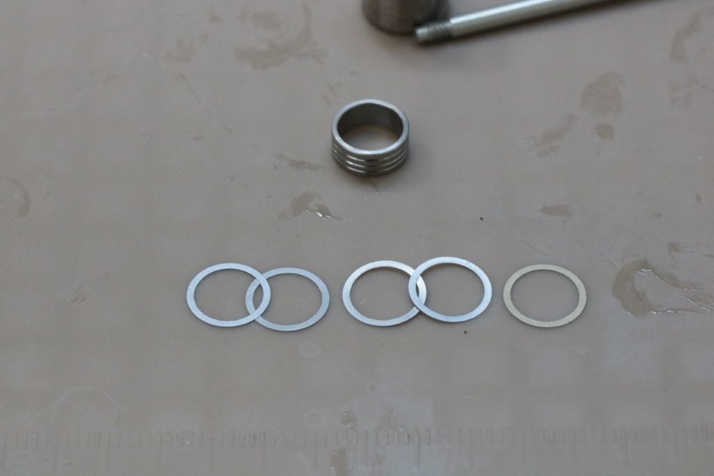 ベアリング下のシムも0.10mmのみでしたので、0.05mm分追加。ロサを熱処理しましたが改善せず。