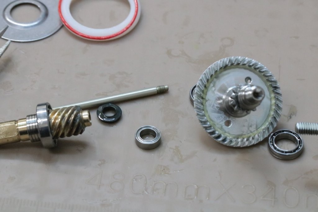 組んでみて、ピニオンギア下のベアリングは交換したほうがよさそうですね。