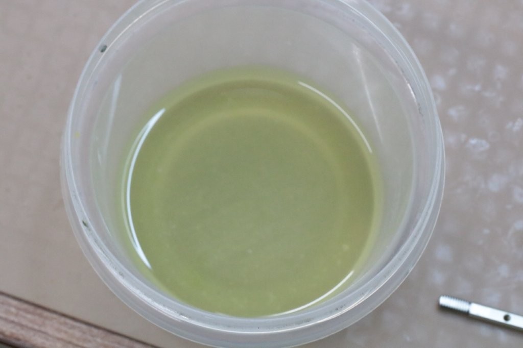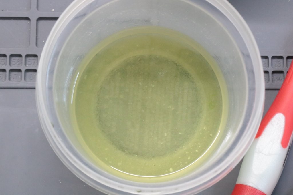 ピニオンギア下周りに緩んだグリスとオイルがたまっています。