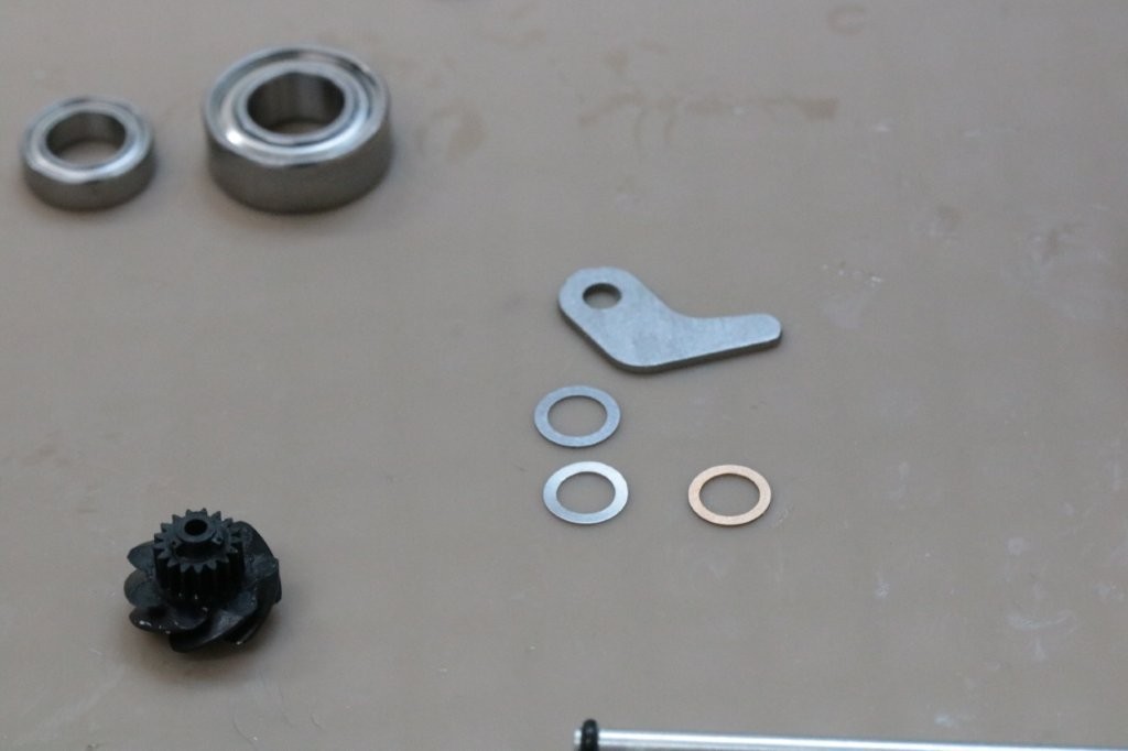 ピニオンギア下、ボディフタ側のベアリングのざらつきと重さ。