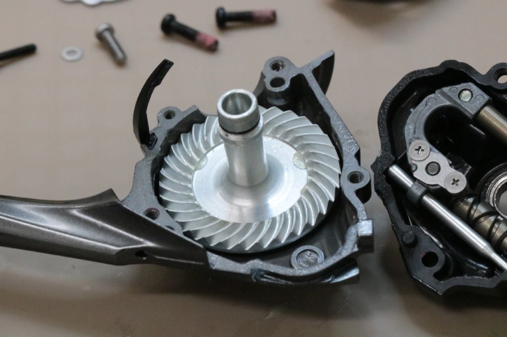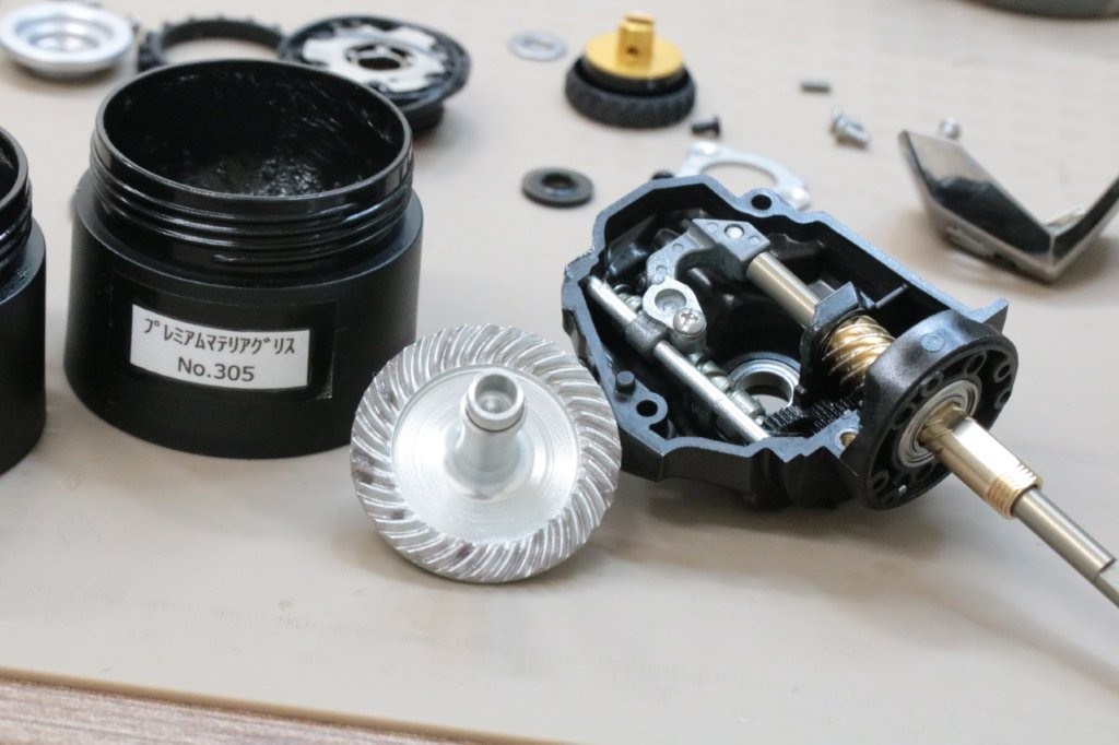 最終、シュルシュルノイズの違和感が完全に消えなかったのでドライブギアのシム調整を行いました。